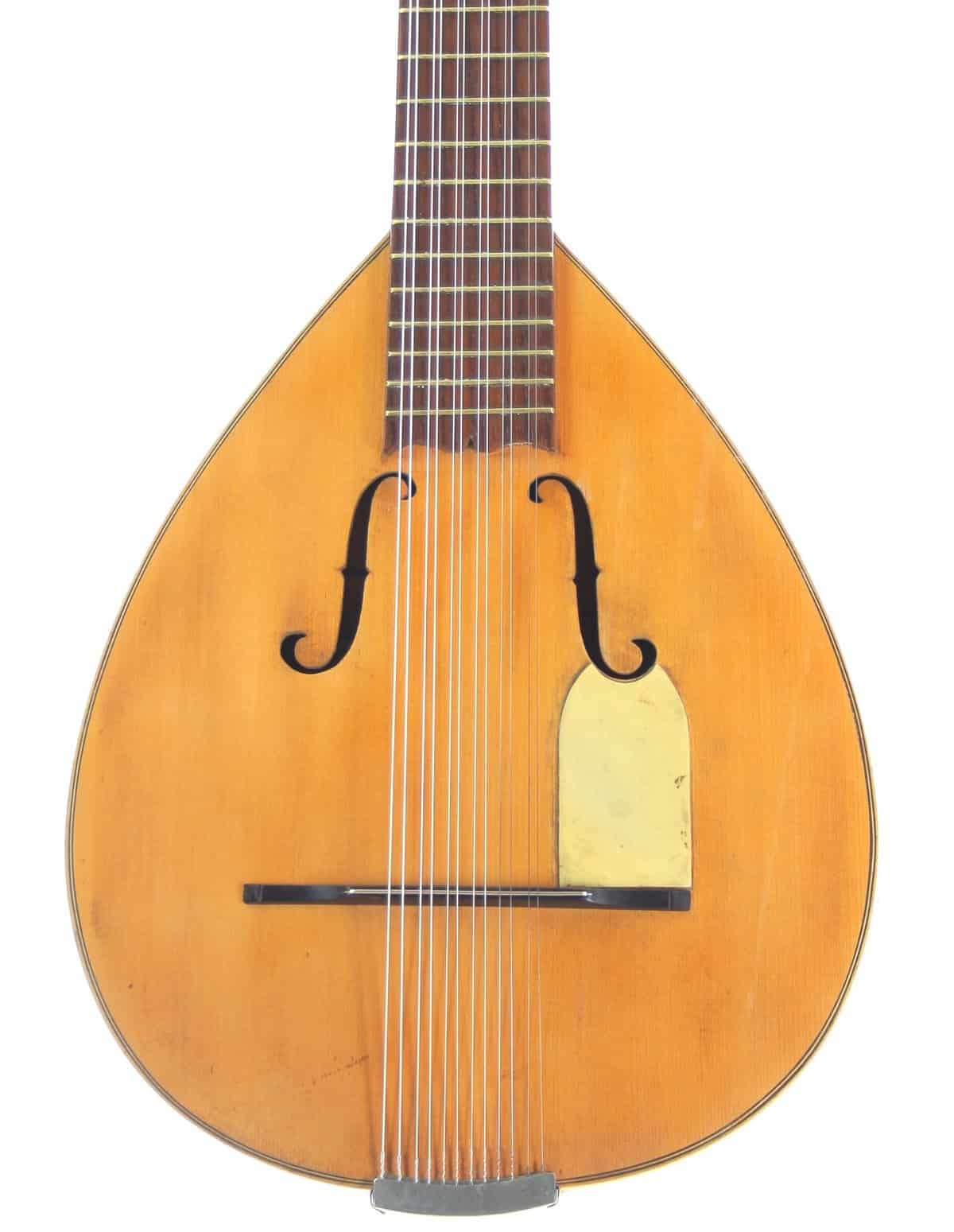 This lute is from 1931 and is a very fine instrument. It is in good condition with only a few professional repairs. It has a spruce top and beautiful pearwood back and sides.