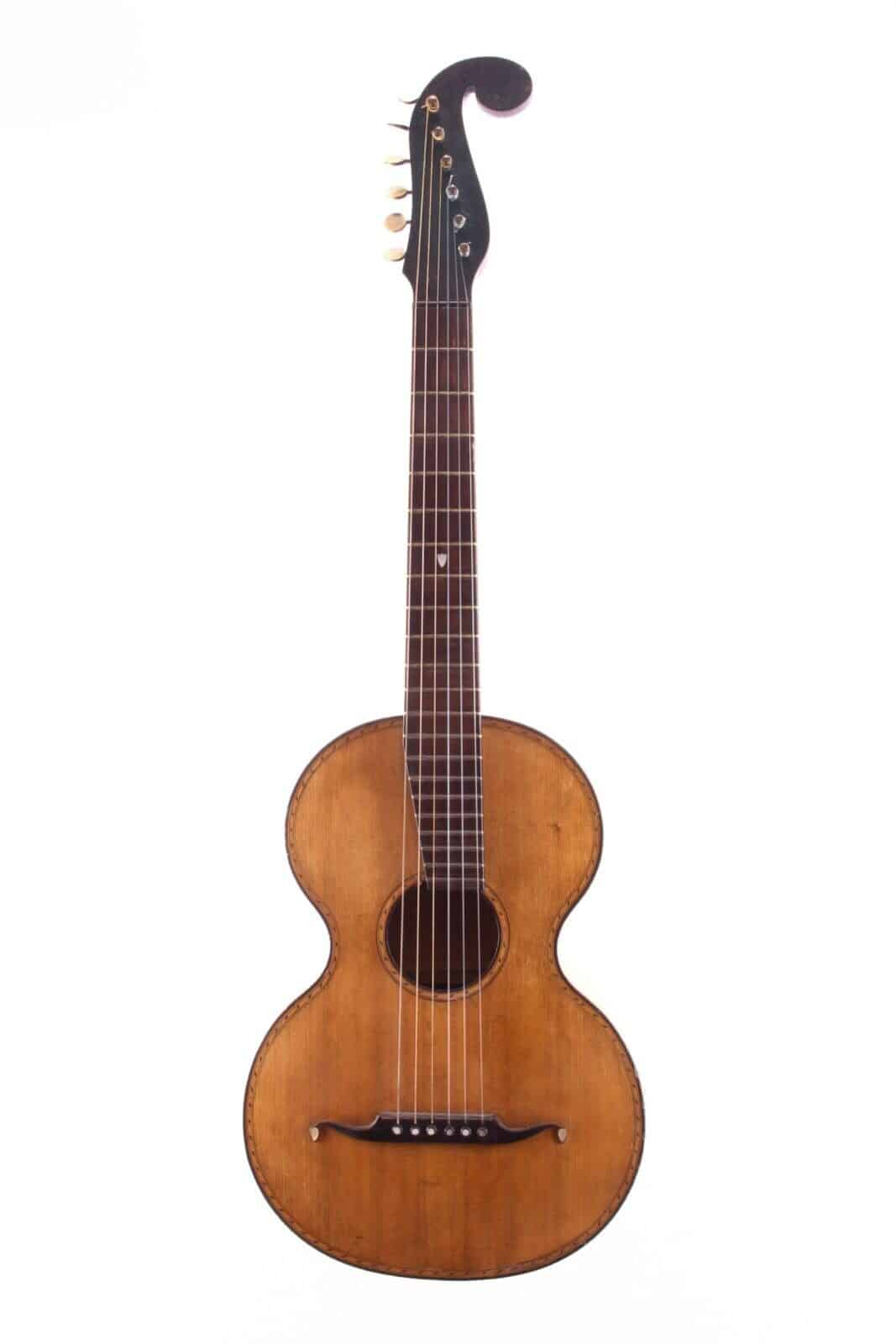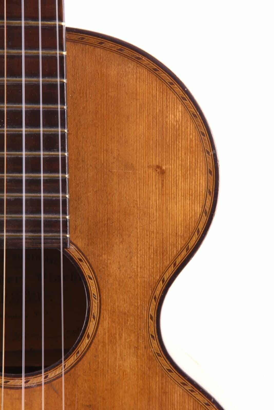 The Placht brothers had a shop in Vienna and another one in the capital of Hungary, today’s Budapest. The label on the guitar says “PEST”, because that was the name of Budapest in the 1800s. It also shows that the guitar was made before 1873, because in that year Buda and Pest united and the name PEST was no longer used.