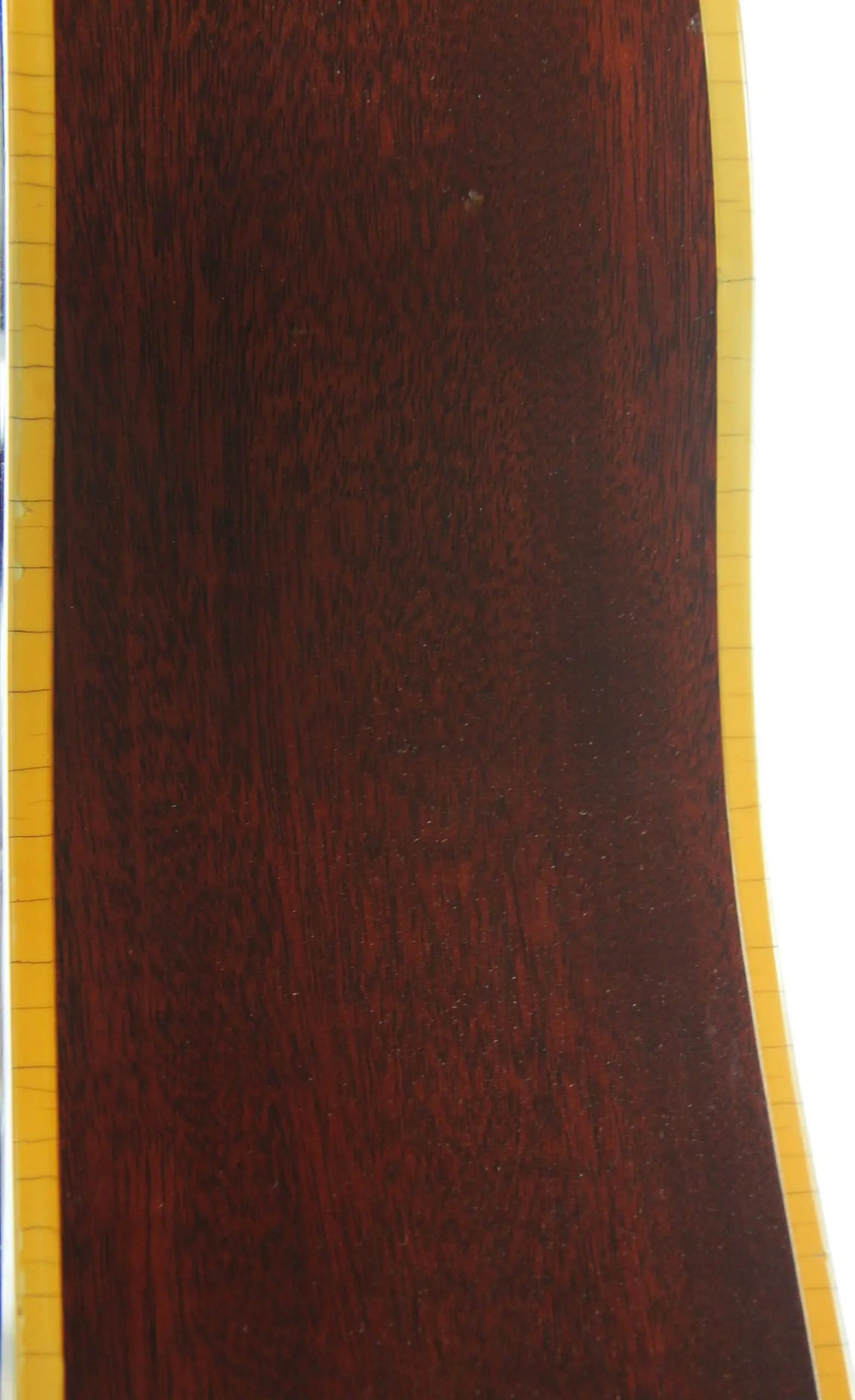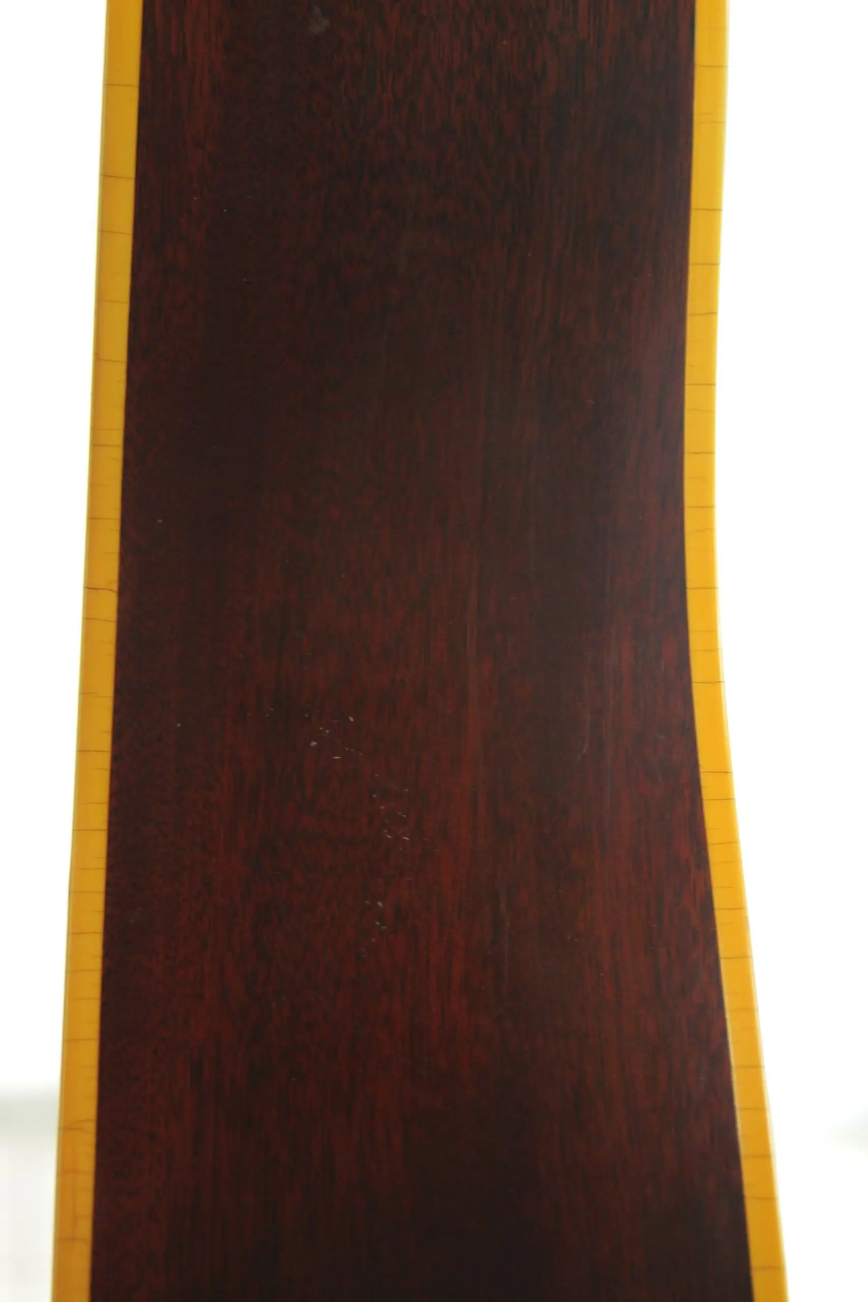The neck profile is very comfortable and the action on this guitar is very low and very easy to play. This J-45 has been set up and plays fantastic up and down the fingerboard. The frets are in good shape.