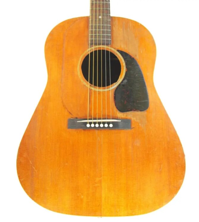 An interesting point is that Bob Dylan also played such a beat-up Gibson J-50 in his younger years.