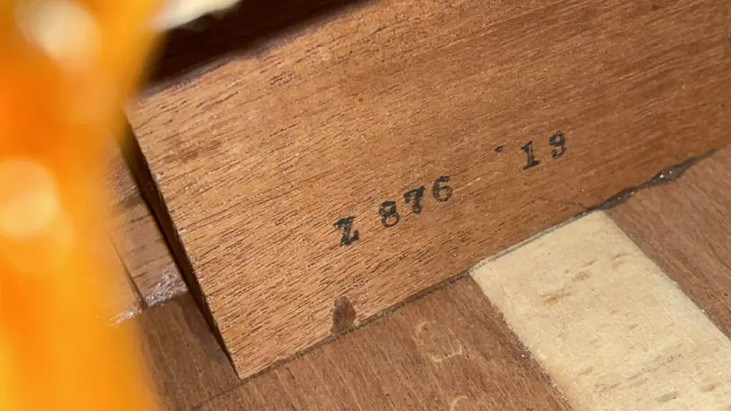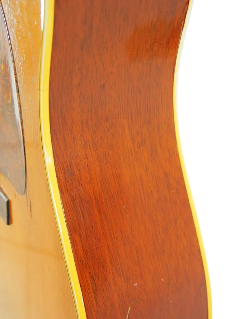 It plays perfectly and is wonderfully adjusted. Low action, straight neck – it had a neck reset. The nut width is 43 mm.