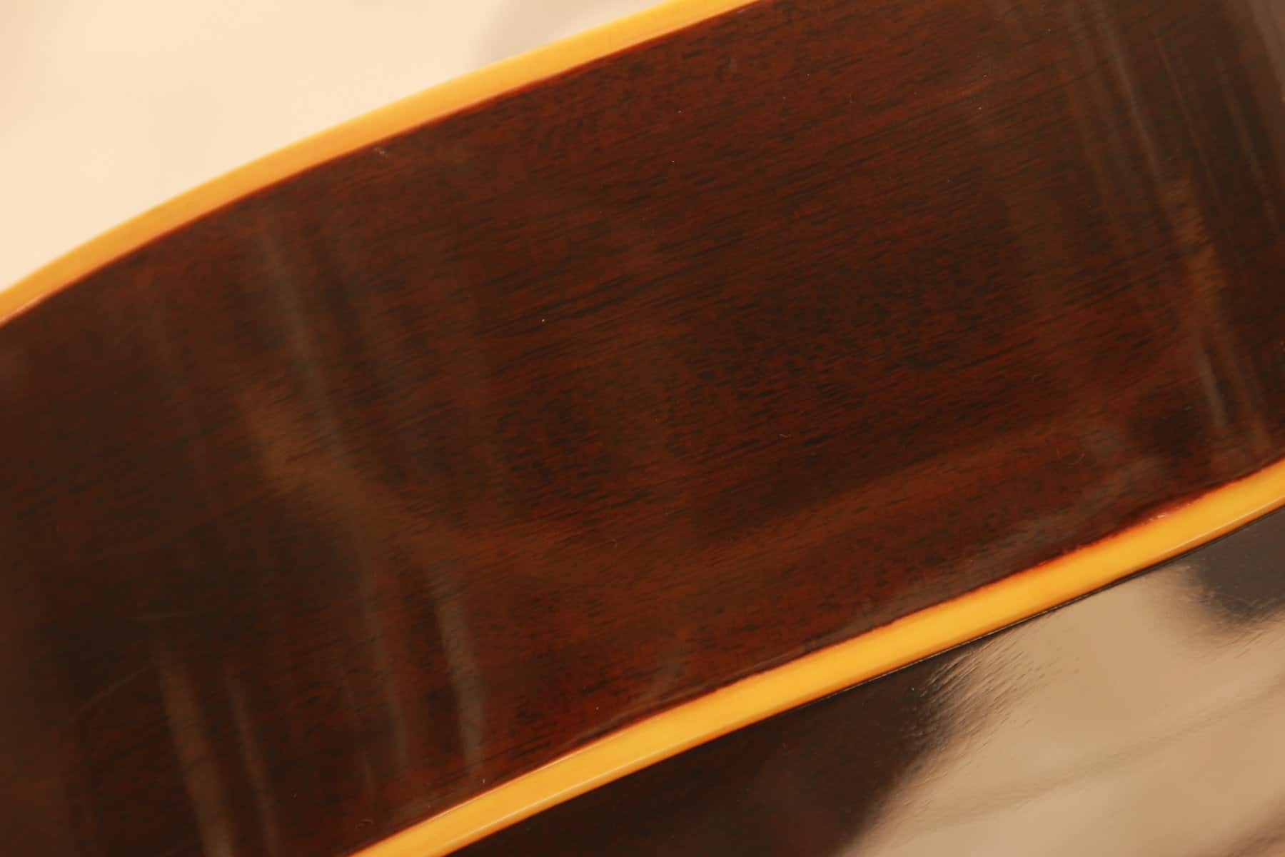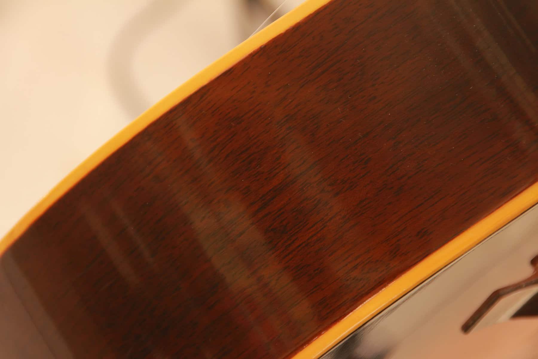Wartime guitars had tall, thin, and deeply scalloped top bracing which results in lively tops and wonderful tone for both fingerstyle and strumming.
