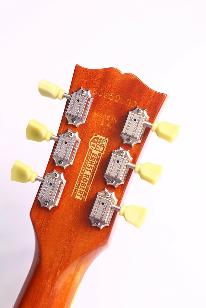 The late 80s and 90s were a golden era for Gibson. The quality of the woods used during this time was exceptional, and the craftsmanship had returned to a high standard after some challenges in the 70s and early 80s. It’s no wonder that Gibsons from this period are highly sought after today. Although they tend to be slightly heavier than modern models, the weight of 3.9 kg only makes itself known at the strap, as this added weight enhances the classic Les Paul tone.