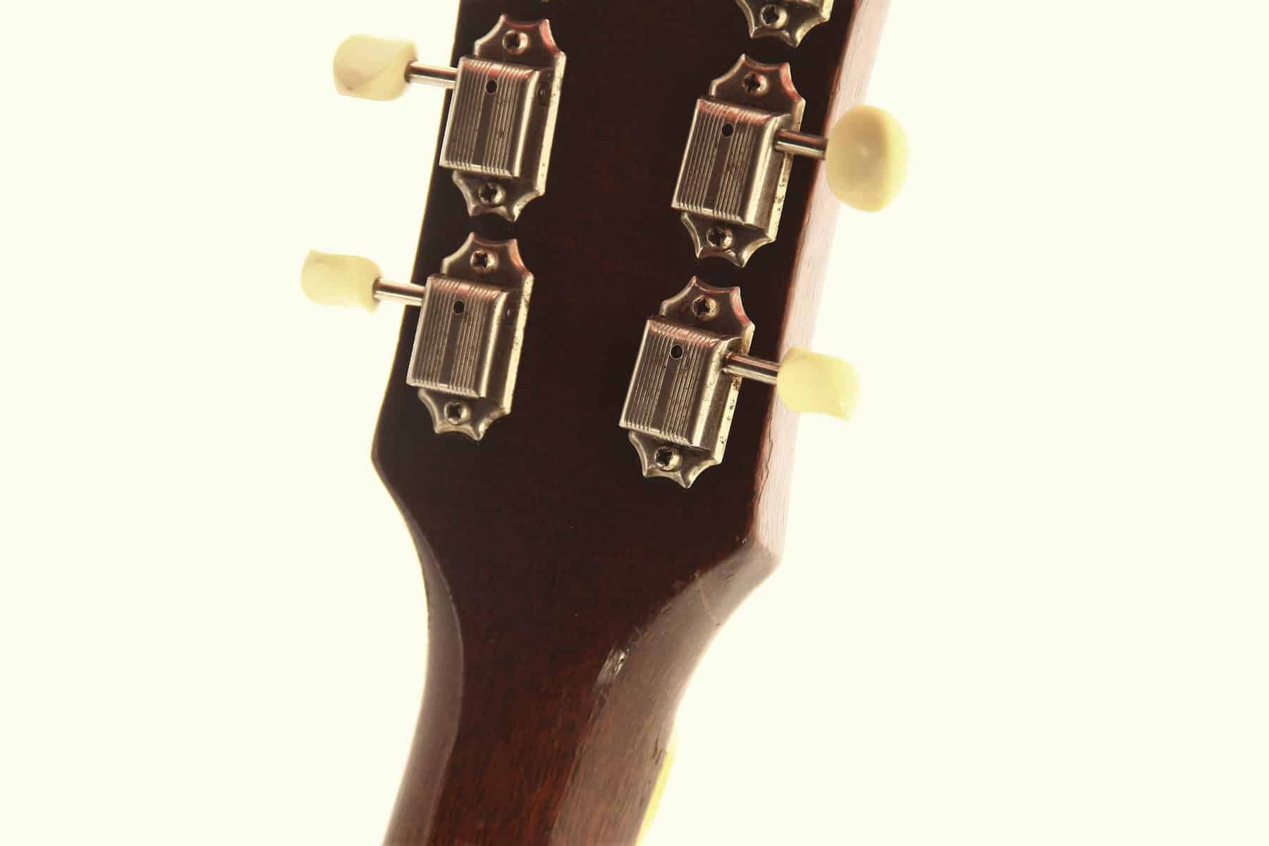 The finish of this model is a dark sunburst, which was the most famous Gibson finish at that time. It has the inlays and decorations typical for this model.
