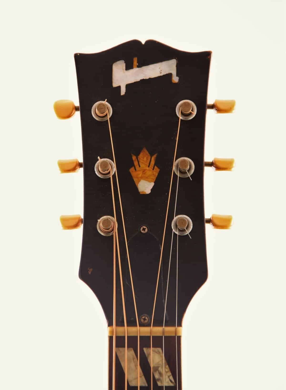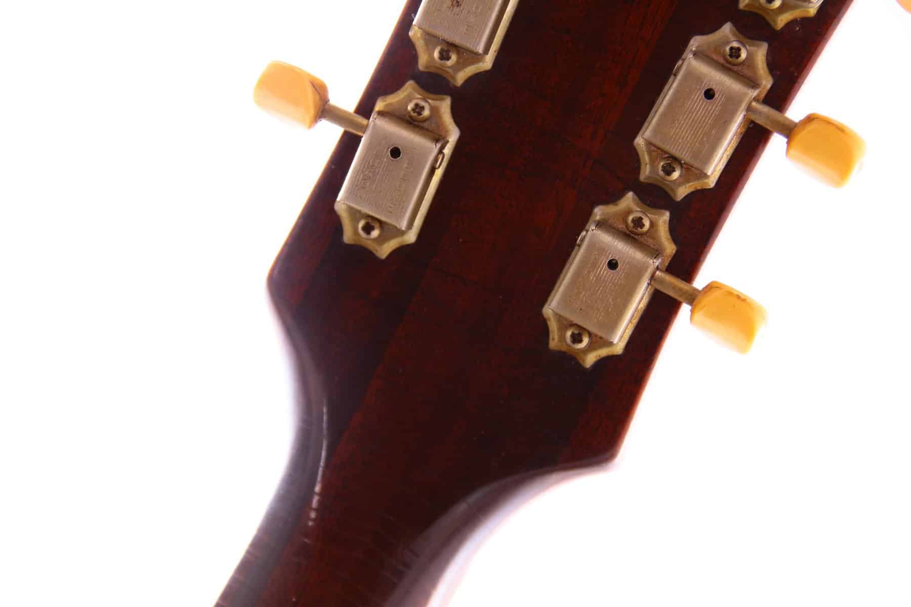The finish of this model is a dark sunburst, which was the most famous Gibson finish at that time. It has the inlays and decorations typical for this model.