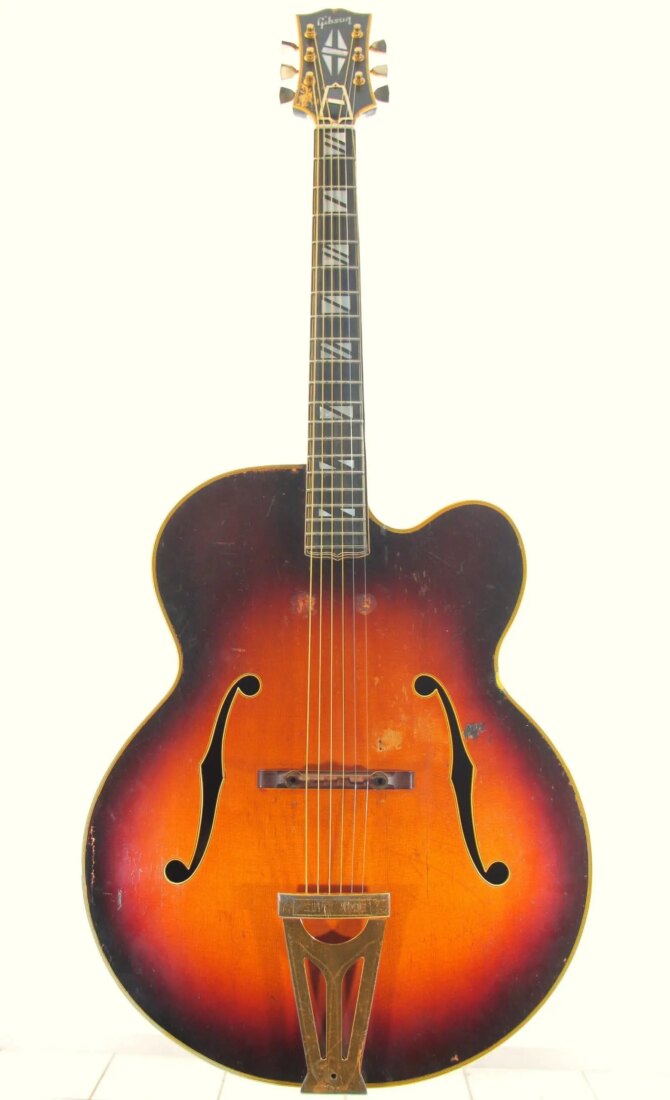 This Super 400 has the power and tone to cut through the sound of a big band. The voice of this instrument is simply exceptional: clear, wide open and deeply resonant, with thundering volume and notably shimmering natural reverb in the treble register. This guitar plays like butter and sounds simply like a dream.