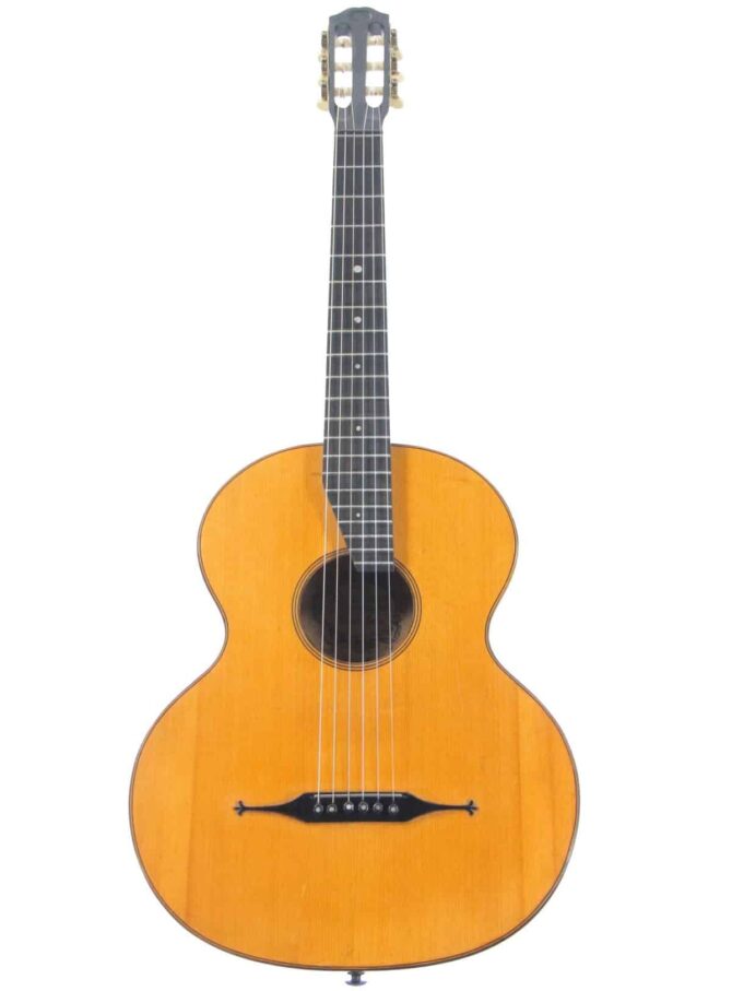 The guitar has 2 small and professional repaired cracks. Very tight and stable. The pencil note of the year has faded away, but the guitar can be dated to 1928.
