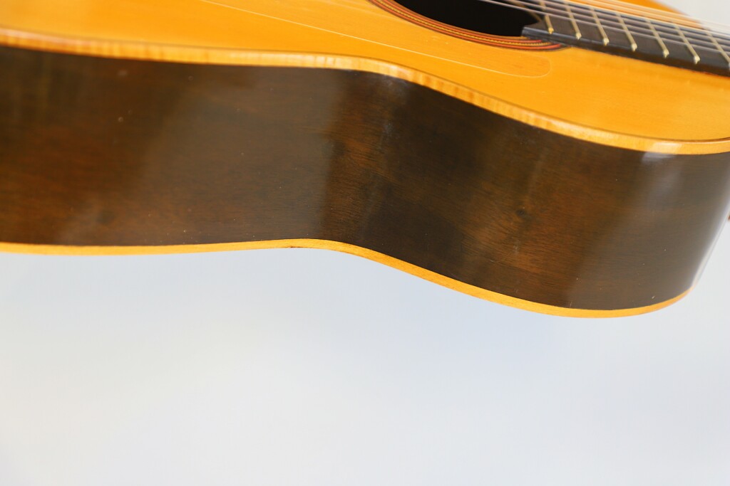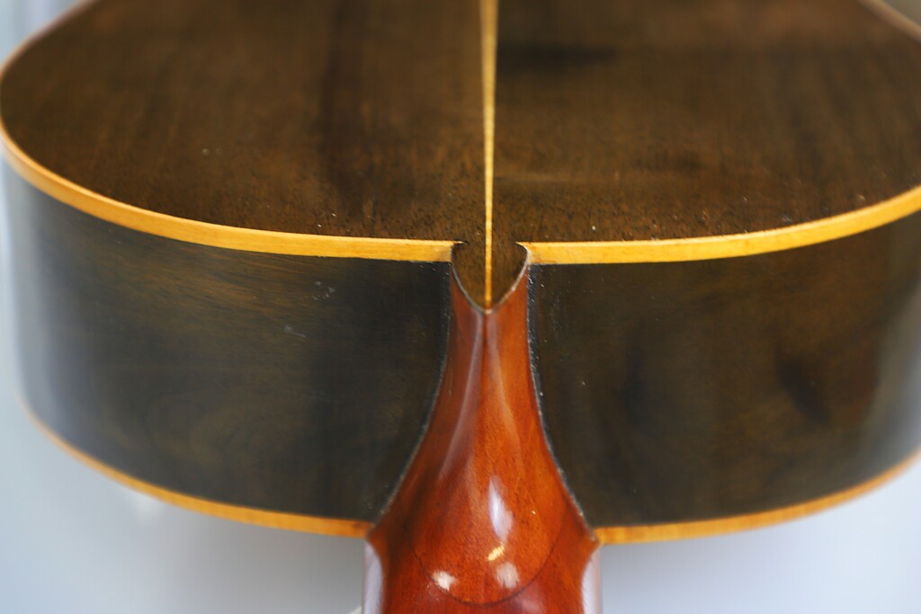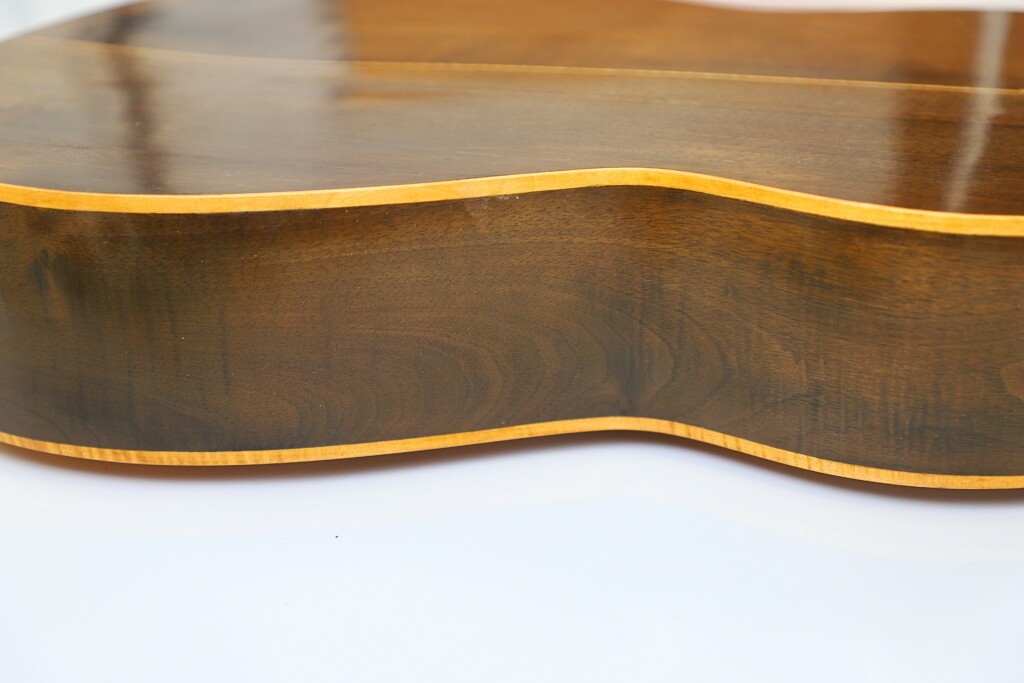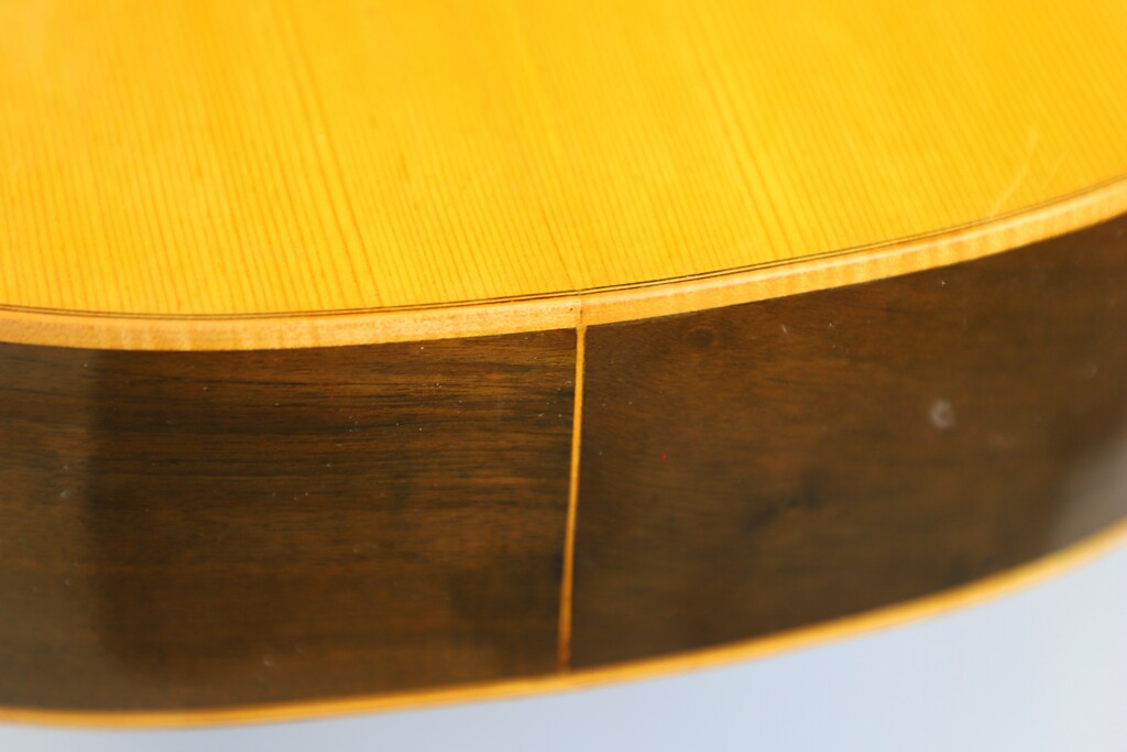 This guitar is in good condition for its age, with 3, expertly performed crack repairs on the back. It is otherwise entirely original and has been meticulously cared for, retaining its full integrity and tonal brilliance. The neck is straight, the action is perfectly set, and the overall playability is flawless (action at the 12th fret: 2.7 mm E and 2.1 mm e).