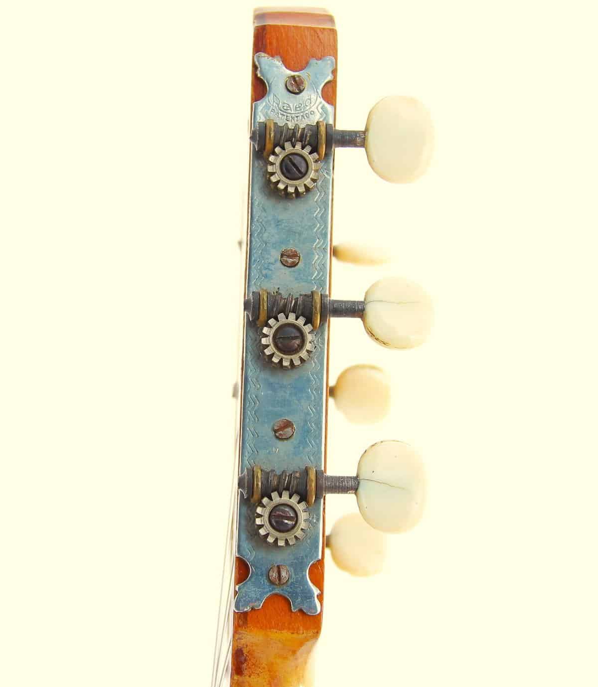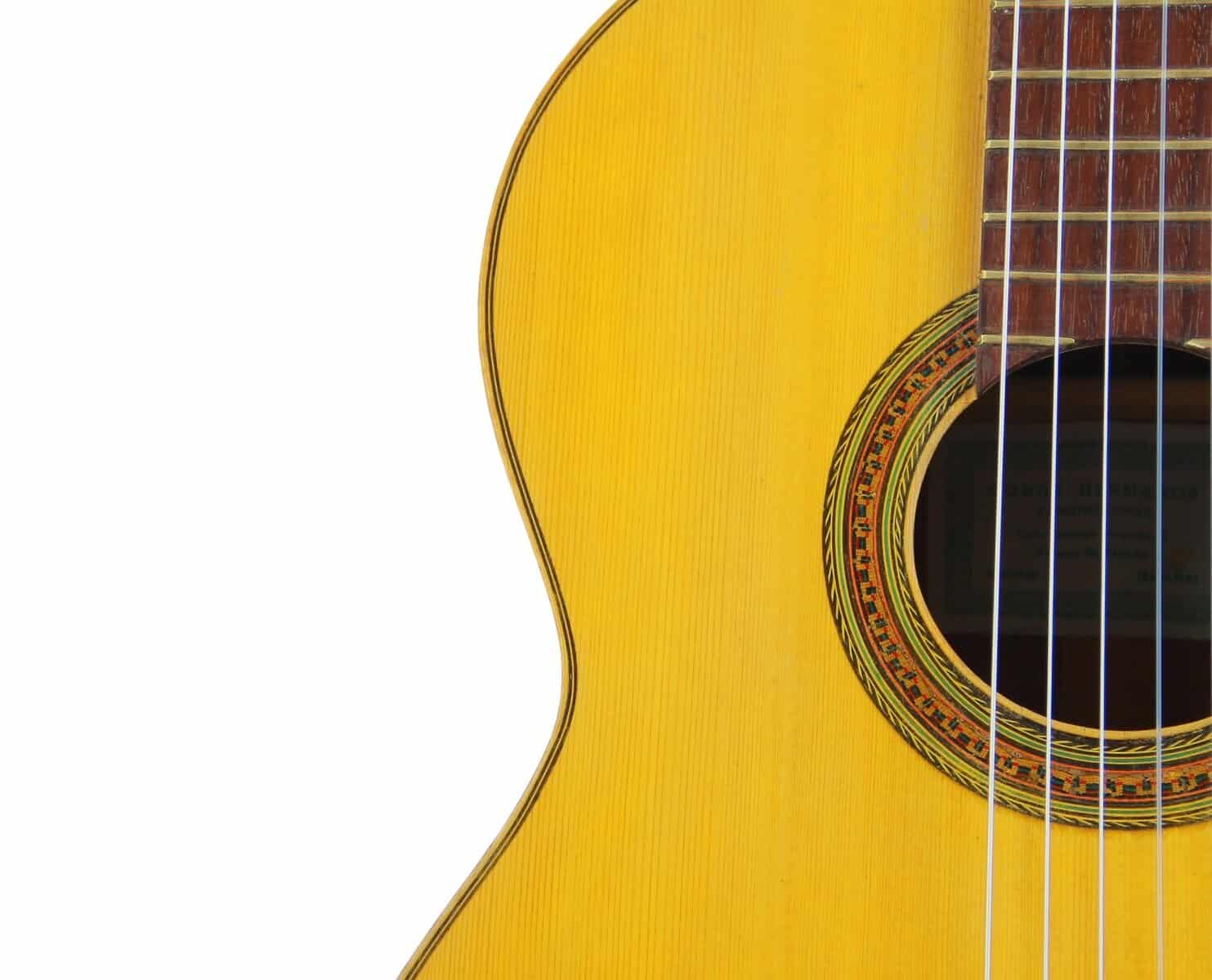 The top is made of fine spruce. Back and sides are made of pear wood – a very nice tonewood which Ramirez, Conde and all leading shops used, beside rosewood, for their so called “negra” guitars.