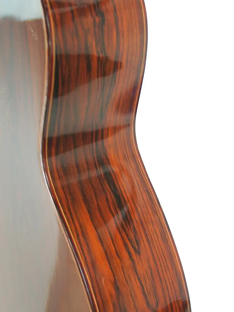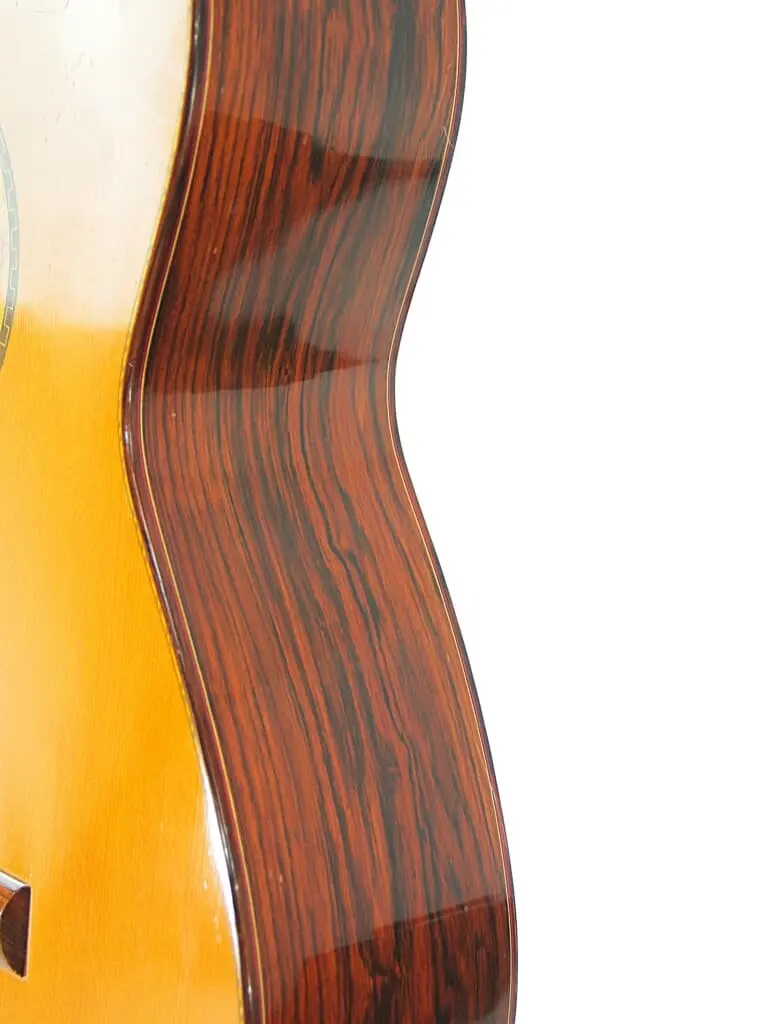 The materials are exquisite with a beautiful matured spruce top and high quality rosewood back and sides.