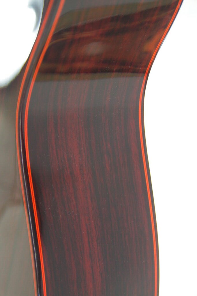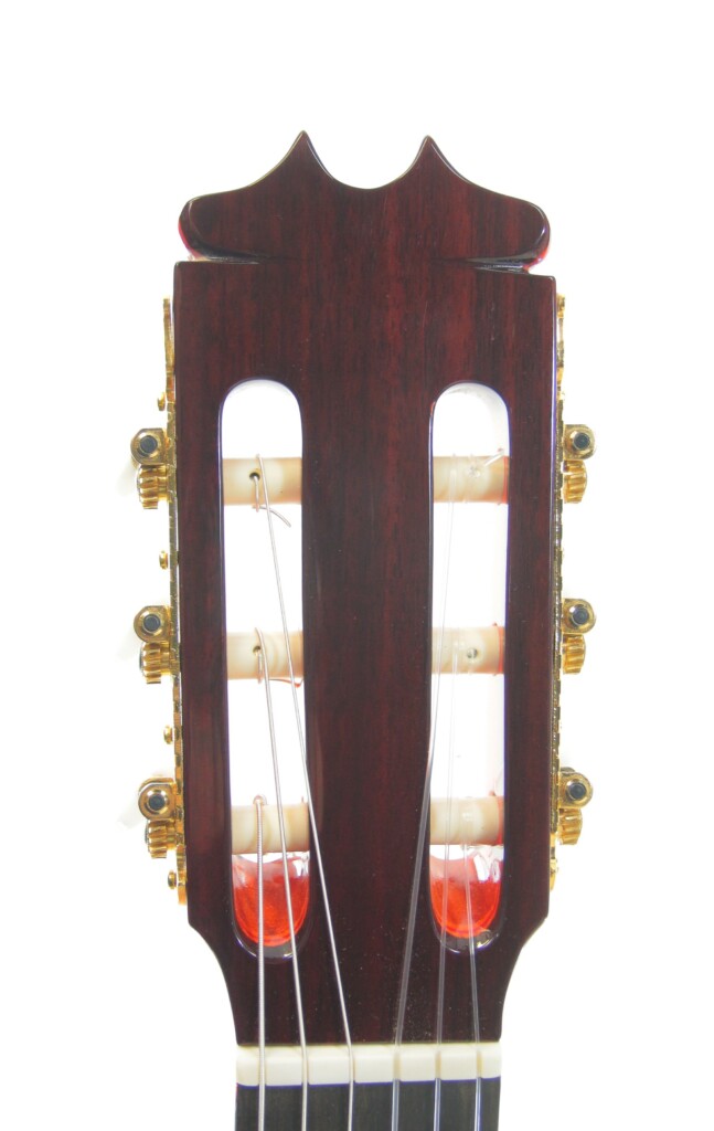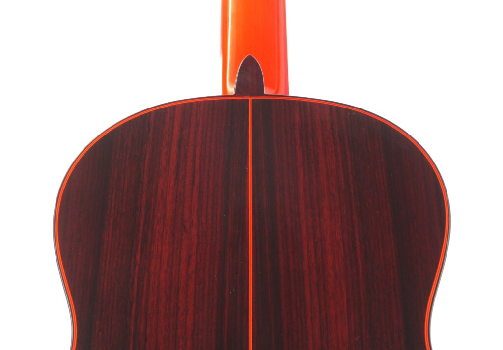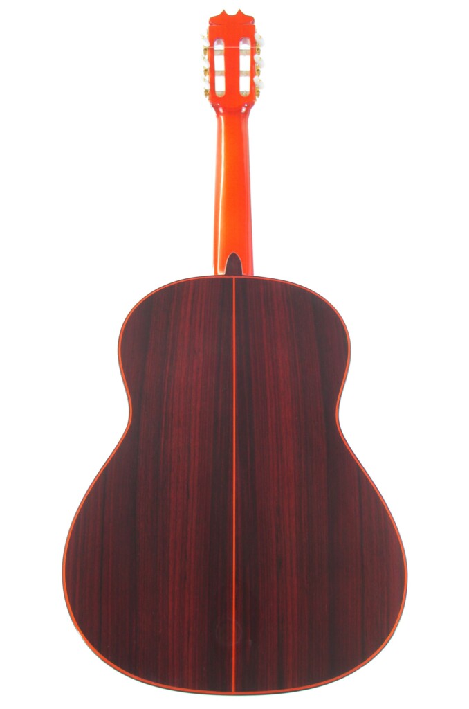This model is very rare, because it’s a “Paco de Lucia” special model with a signature of Paco de Lucia on the label and the signature of Conde. It is a very limited edition, made by the workshop over the years. It has a nice spruce top and rosewood back and sides – similar to the original Paco de Lucia guitar. The scale length is 664 mm and the nut width 52 mm. The condition of this guitar is very good. It only has some very light wear from play and use.