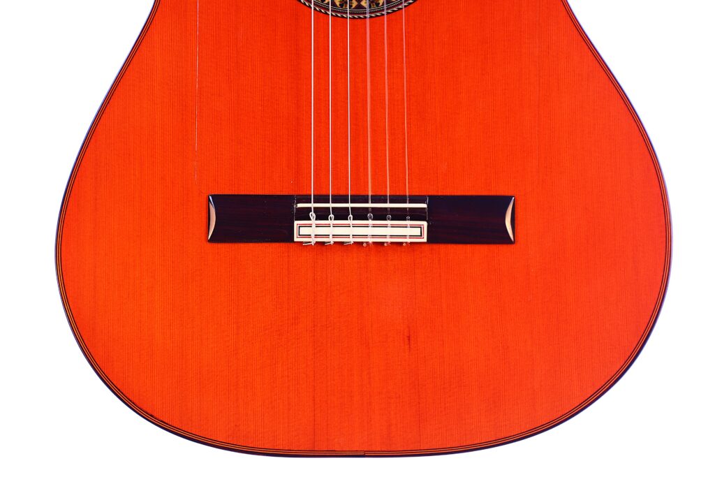 Tonally, this Hermanos Conde 1998 Paco de Lucia Special Flamenco Guitar is truly remarkable. The attack is fast and direct, with clear, percussive trebles and deep, resonant basses. The sound is fiery and bold yet retains a lyrical warmth, responding effortlessly to changes in dynamics. Played gently, it reveals a world of subtle overtones and nuance. When pushed, it delivers a powerful, rhythmic bite, making it ideal for traditional flamenco techniques. This wide expressive range is a defining characteristic of only the finest handcrafted instruments.