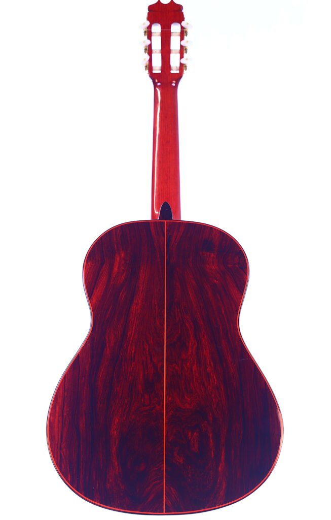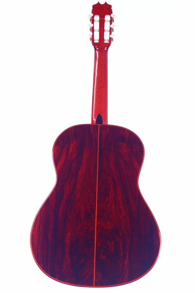 This Hermanos Conde 1998 Paco de Lucia Special Flamenco Guitar, created in tribute to Paco de Lucía, is a rare and highly sought-after instrument. It bears the signatures of both Paco de Lucía and the Conde workshop on the label, adding to its collectible value. The cedar top and rosewood back and sides closely resemble the maestro’s own guitar, offering a rich and dynamic tonal palette. With a 664 mm scale length and 52 mm nut width, the guitar provides both power and precision, ensuring a comfortable and responsive playing experience. The action at the 12th fret is set at 2.7 mm on the low E string and 2.1 mm on the high e string, striking the perfect balance between ease of playability and crisp articulation.