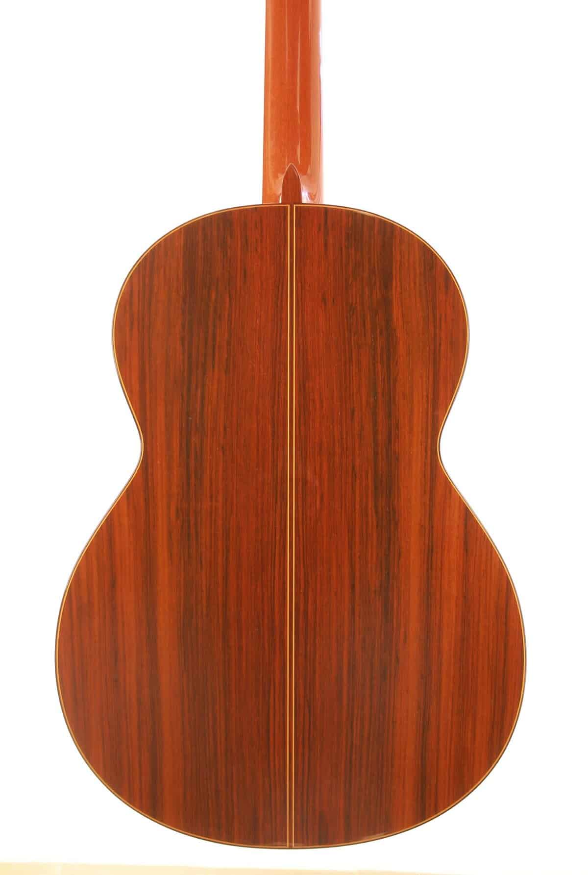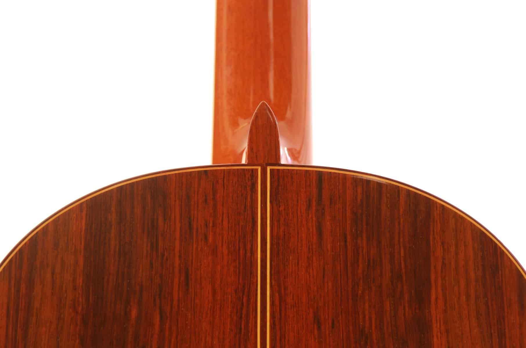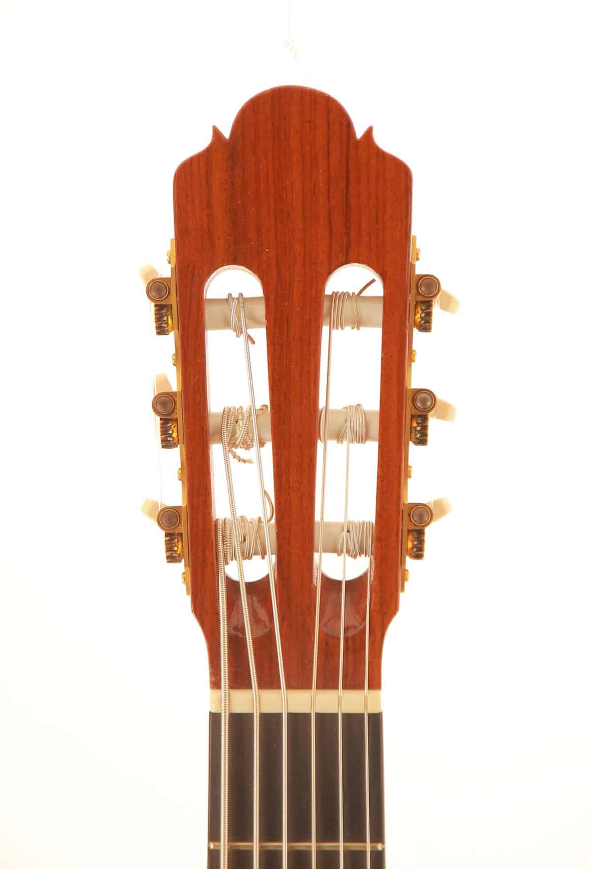 This guitar has a spruce top and back and sides: of East Indian rosewood. The scale lengths is 750 mm and the nut width 53 mm.