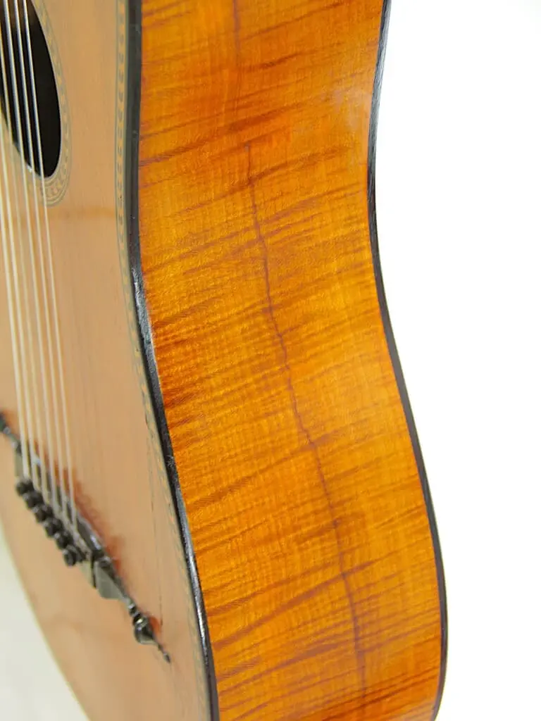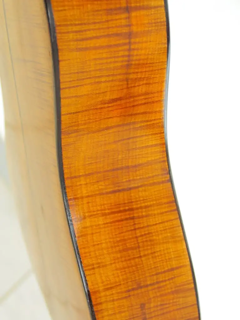 The maple used for the back and sides is of outstanding quality. The guitar also has a very fine spruce top. The scale length is 650 mm and the nut width is 48 mm.