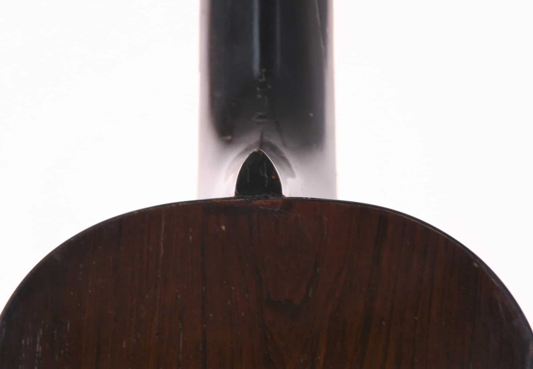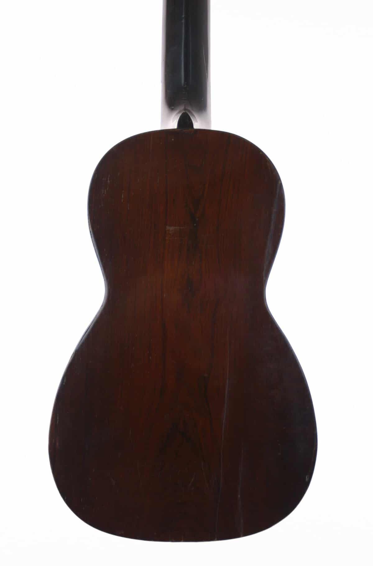 The rosewood used for the back and sides is the highest quality wood available at the time. The guitar also has a very fine spruce top and an ebony fingerboard.