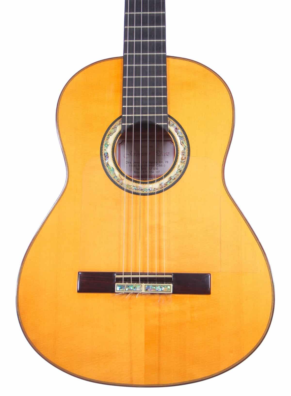 Spectacular flamenco guitar from Jeronimo Perez – a flamenca blanca that leaves nothing to be desired.