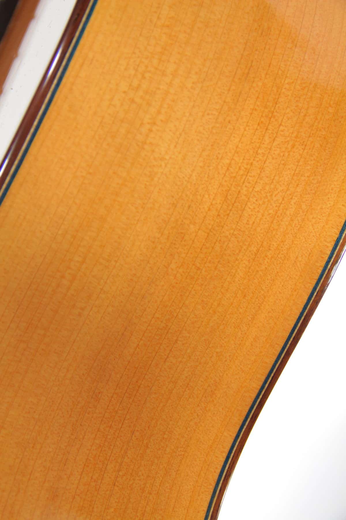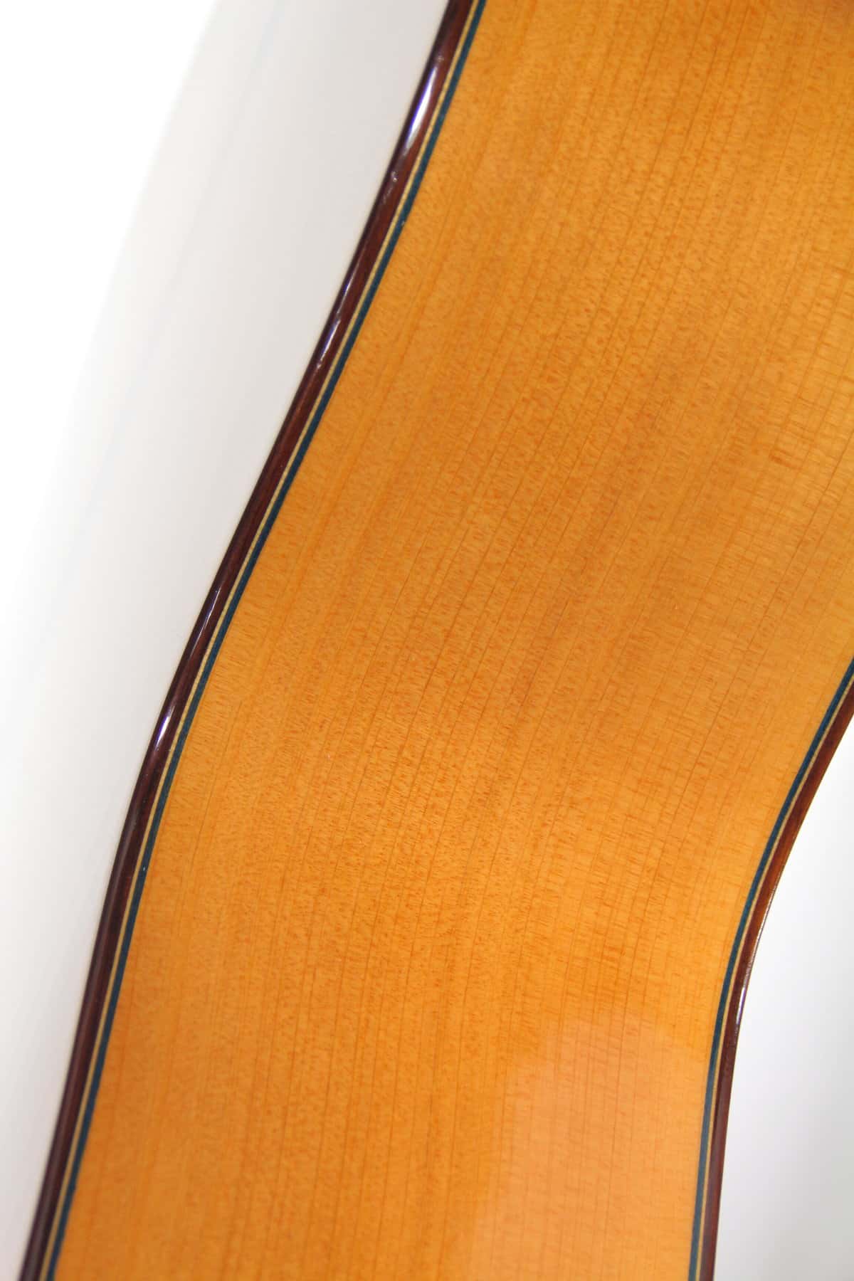 Incredible beauty and quality can be admired in the woods of this guitar. The spruce top has a straight and equidistant grain over the entire surface. It has the desired birdseye structure. The rosette is just stunning. The back and sides are made of very nice cypress, with an exceptional quality and beauty.