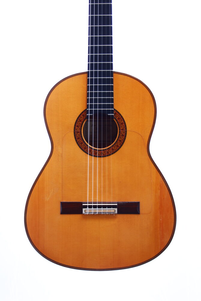 This is without doubt a fine concert level guitar with a very strong fundamental and very controlled overtones. It has a very natural, “woody” quality of sound, very stylish, refined and alluring. In the hands, it feels very expressive and responsive to the most subtle of changes in the players touch. The sound is absolutely magical from the bottom-end to the highest registers.