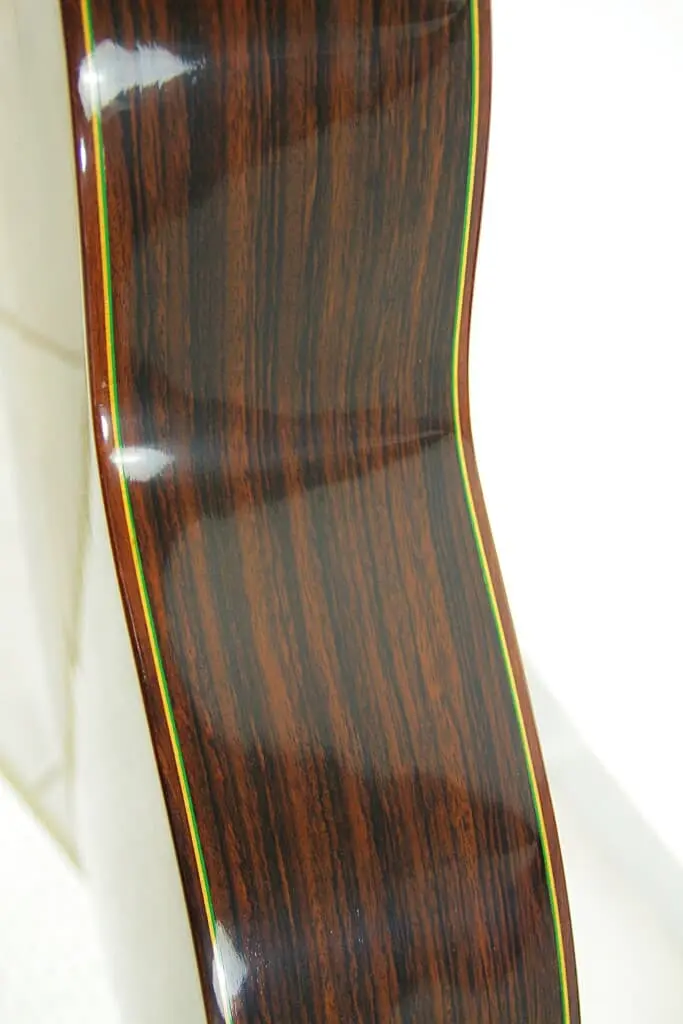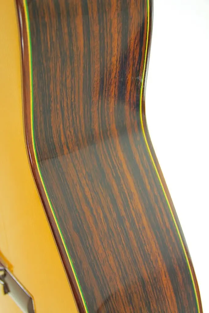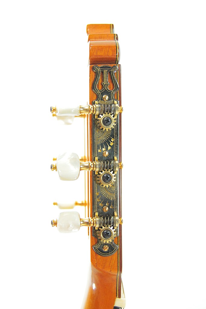 This guitar is simply great and a work of art. It has a nice cedar top and back and sides of matured rosewood. The scale length is 655 mm and the nut width 52 mm.