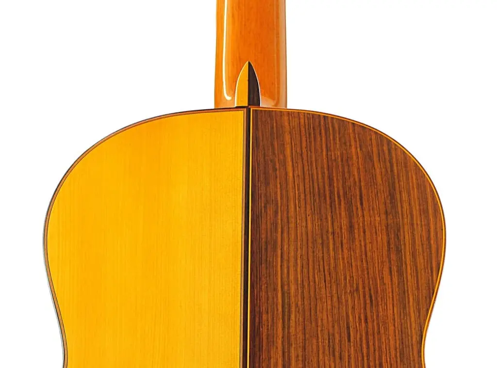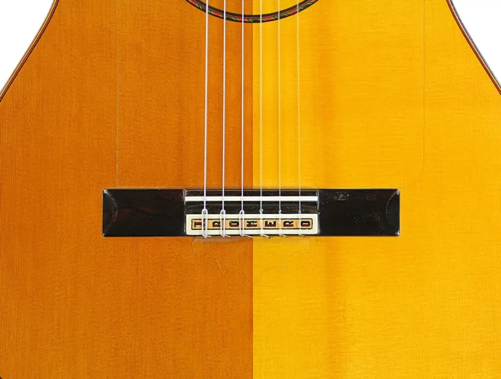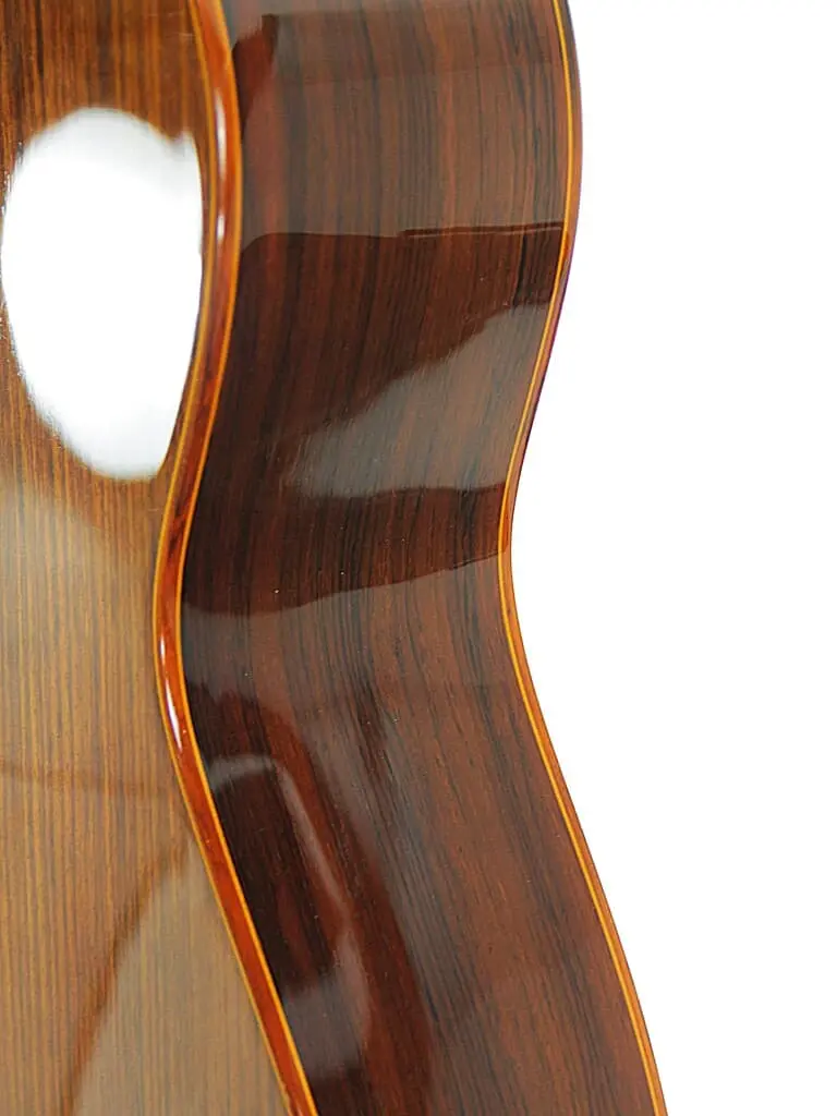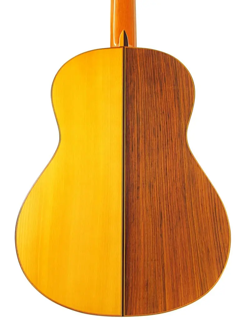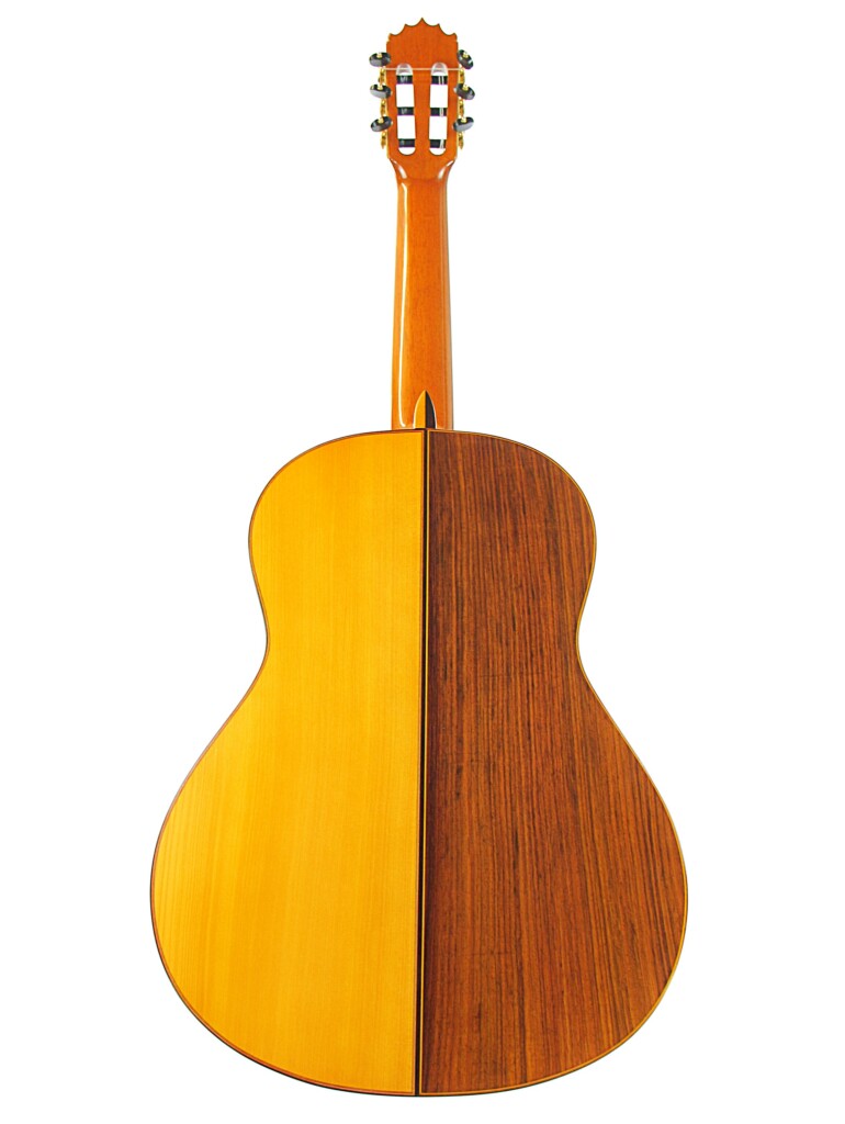 There are only 2 of these guitars in the whole world. The concept was developed by Jose Romero together with the world-famous guitarist Ramon Jimenez. This guitar has a cedar/rosewood construction in the bass range, which gives it very distinctive and warm bass tones, while the spruce/cypress construction gives the trebles clarity and spontaneity.