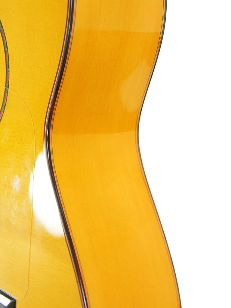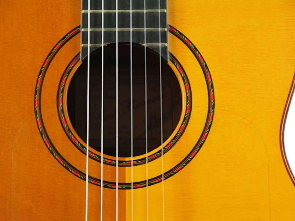 This beautiful flamenco has, in addition to the already described sound characteristics, an outstandingly noble sound. The balance between treble and bass is excellent. It is a very flexible guitar – loud and growling when played hard, but it also sings the sweetest melodies when gently plucked.