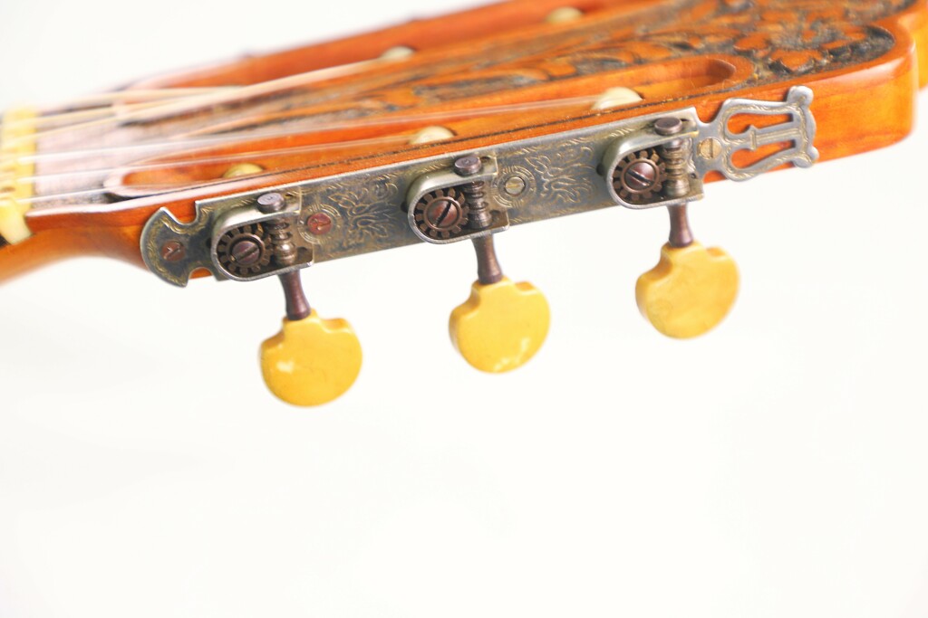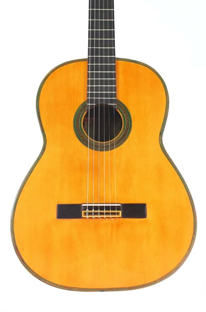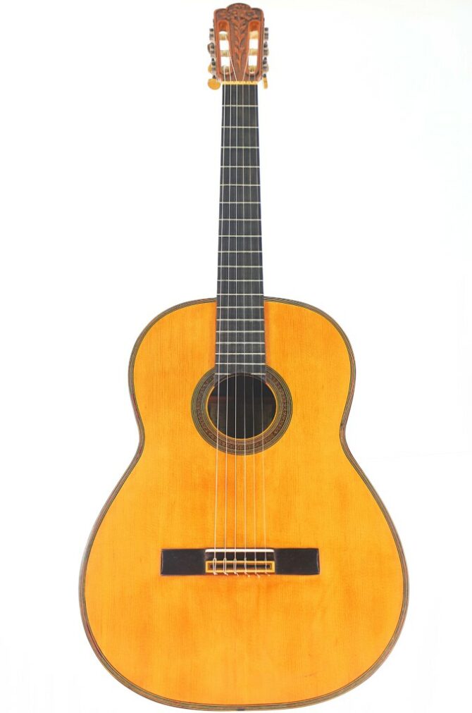 Despite its age, the guitar has been well preserved and remains in great condition. The French polish has been refreshed. It is accompanied by its original case, adding to its historical significance.