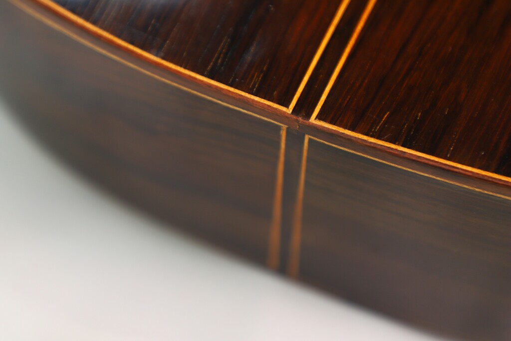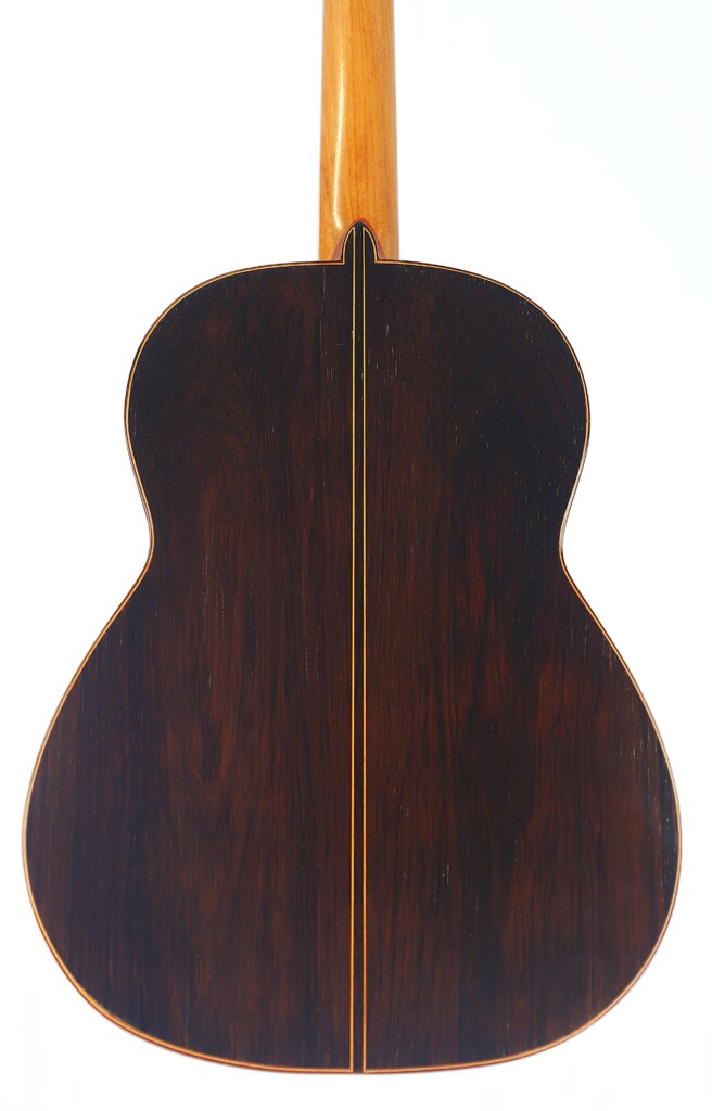 A true concert-level instrument, this guitar possesses remarkable power and an impressive capacity for projection, making it ideal for performance. It features a nut width of 50 mm and a scale length of 650 mm, offering both comfort and ease of playability. The top is crafted from the finest spruce, while the back and sides are made from carefully selected rosewood. The workmanship and varnish are of exceptional quality, among the finest ever seen on a guitar from the Barcelona school of luthiery.