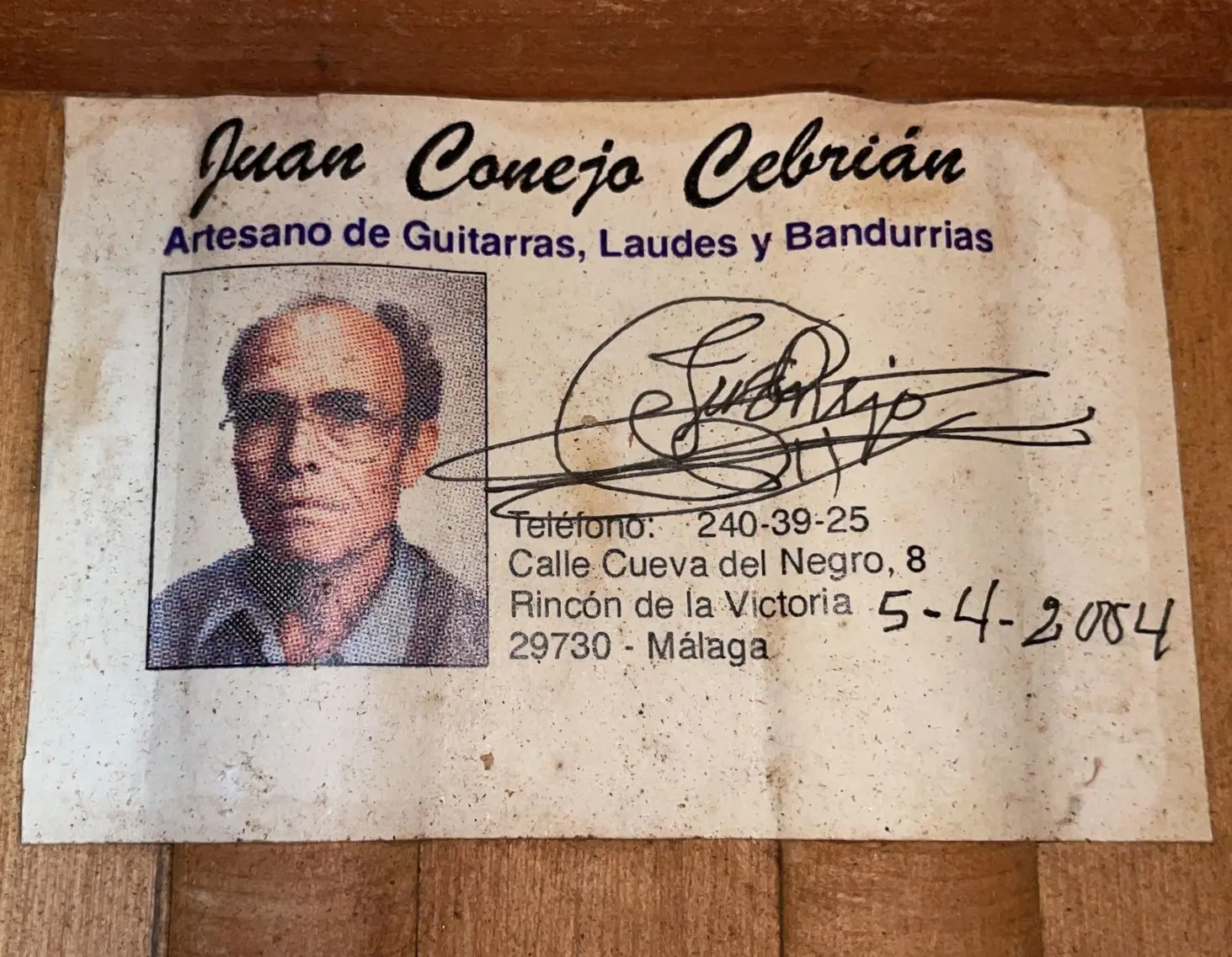 Juan Conejo Cebrián was a guitar maker from Malaga who has since passed away.