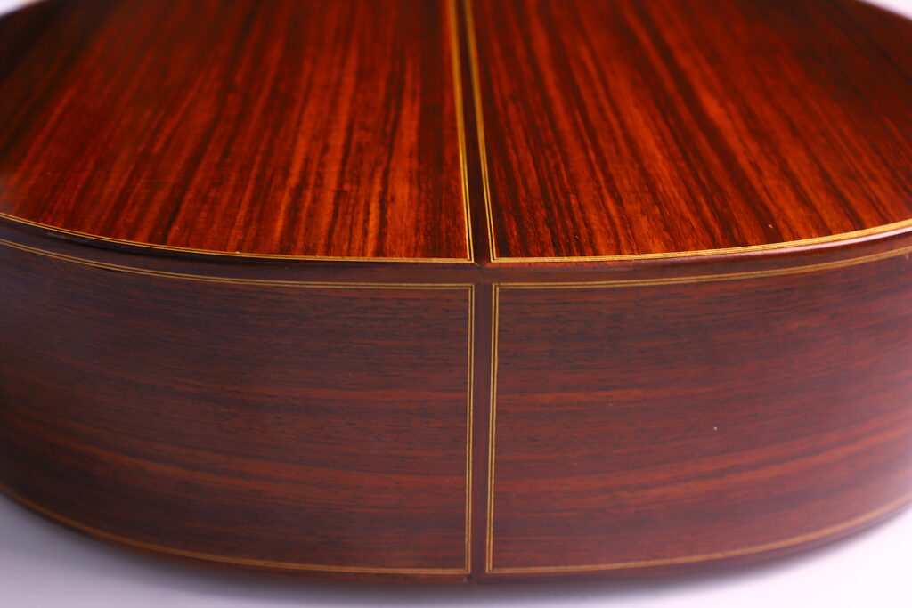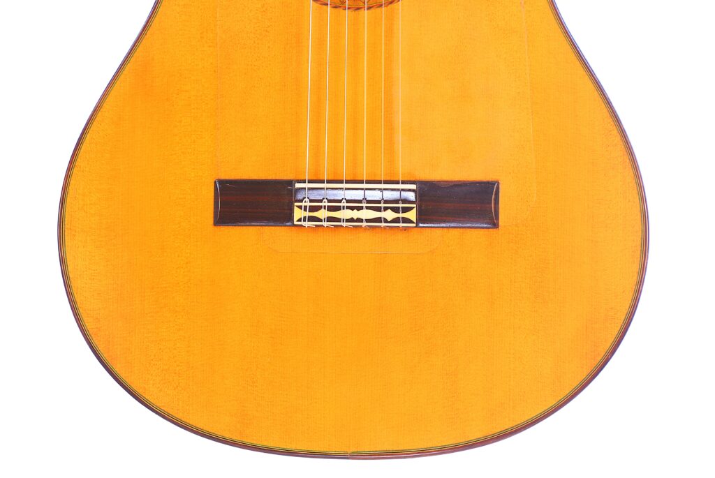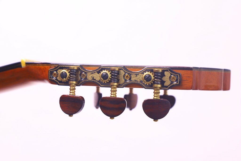 This Juan Montero 1994 Negra Flamenco Guitar is no exception … it has a wonderful and sweet tone with tremendous power. The trebles are clear and focused. The basses are firm. The balance between treble and bass is excellent. It is a very flexible guitar – loud and growling when played hard, but it also sings with the sweetest melodies when played softly.