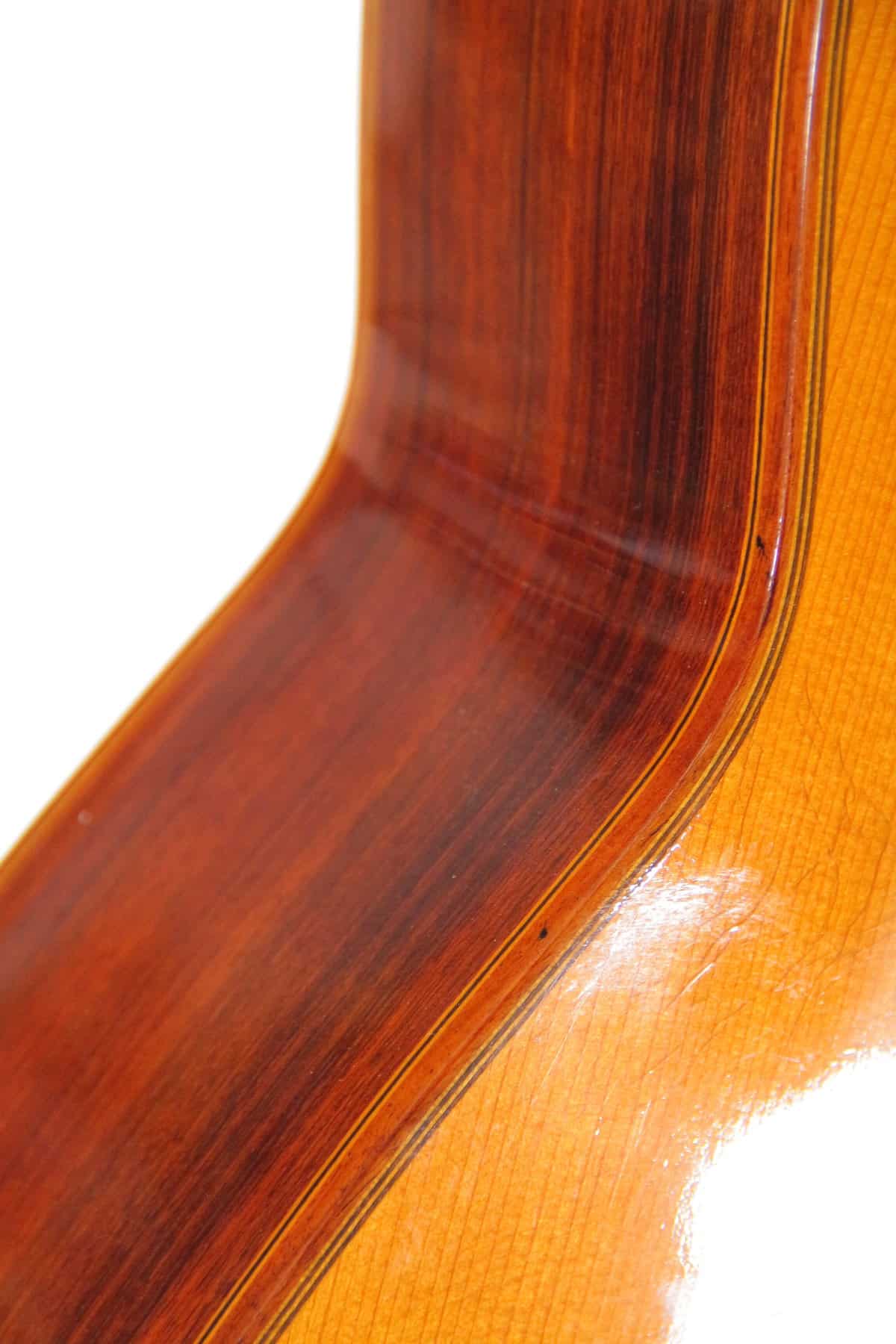 This classical Juan Roman Padilla guitar is truly unique. The old woods and varnish have melted together and emphasises the beauty of the fine spruce top and the perfectly cut rosewood.