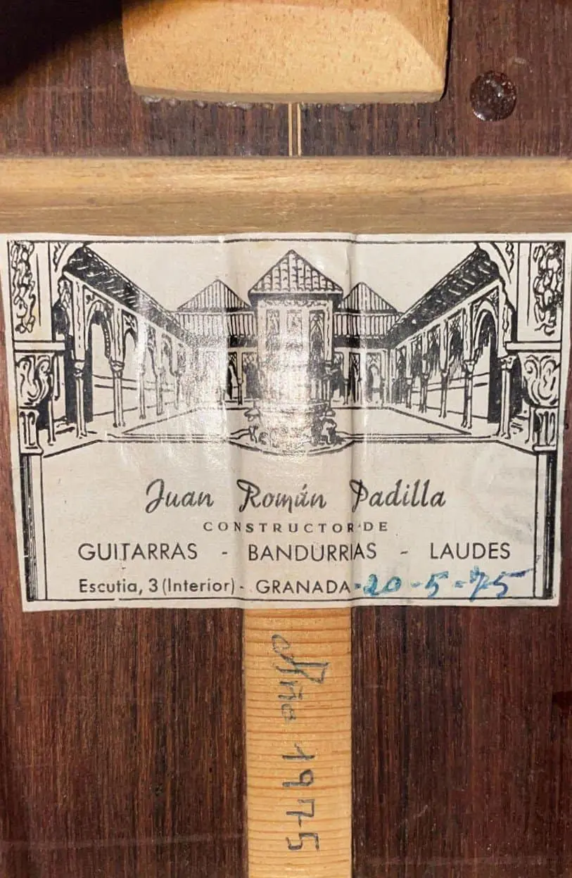 Juan Roman Padilla 1928 – 2018 was a remarkable luthier in Granada. Among the most interesting episodes in his life are a series of visits to Marcelo Barbero who was a friend of his father. These visits definitely had a great influence in Padillas style of building guitars.