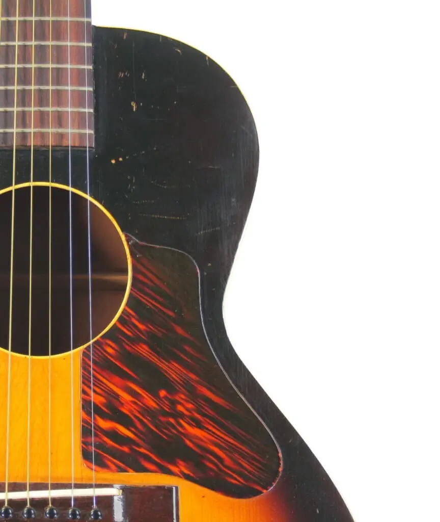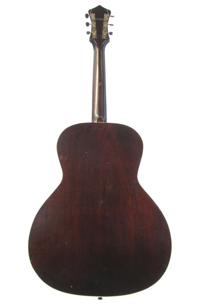 This Kalamazoo KG-14 is in very good condition for its age. It has a professionally repaired pickguard crack. The neck has been reset and the guitar plays great, with a low action. It has a cool sunburst finish. The FON dates this guitar to 1937.