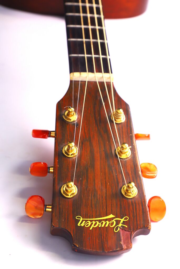 The Lowden S-10 1980s Acoustic Guitar is a rare and highly collectible instrument, built during one of the most important transitional periods in George Lowden’s history. While the “S” model name today refers to a small-body size, in the early 1980s it stood for Jumbo. Between 1980 and 1985, Lowden guitars were made in Japan by S. Yairi under license. When acoustic guitar demand dropped, George Lowden decided to return production to Ireland, training new craftsmen and starting serial numbers again from “0” with a distinctive oval green-edged label.