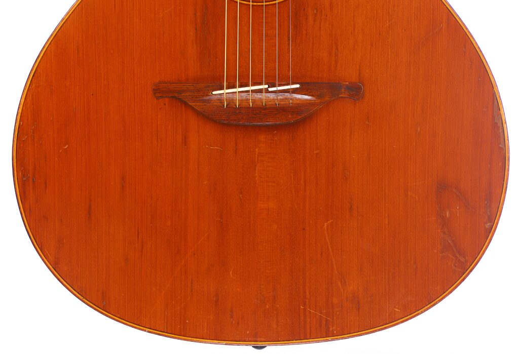 Tonally, this guitar is everything you would expect from an early Lowden. The cedar top and mahogany body create a warm, responsive voice with rich overtones and excellent clarity. The Jumbo body offers depth and projection, while still retaining the sweetness and balance that makes Lowden guitars so beloved by players worldwide. With its comfortable C-profile neck and low action, it plays effortlessly across the fretboard.