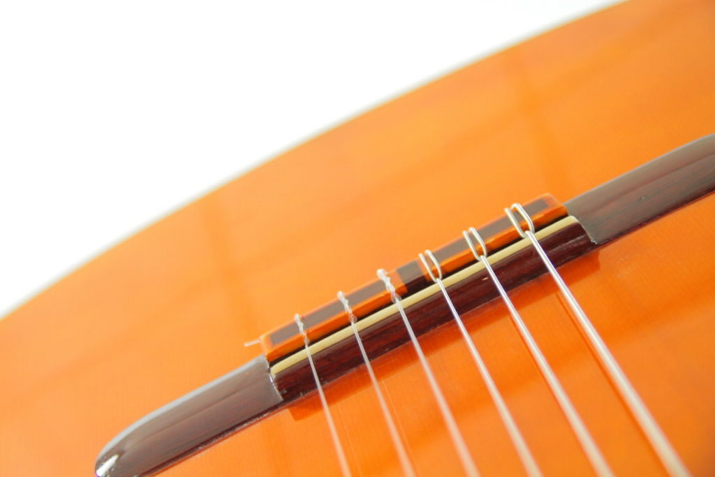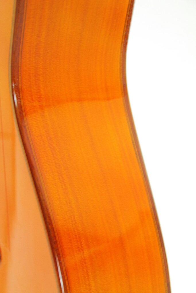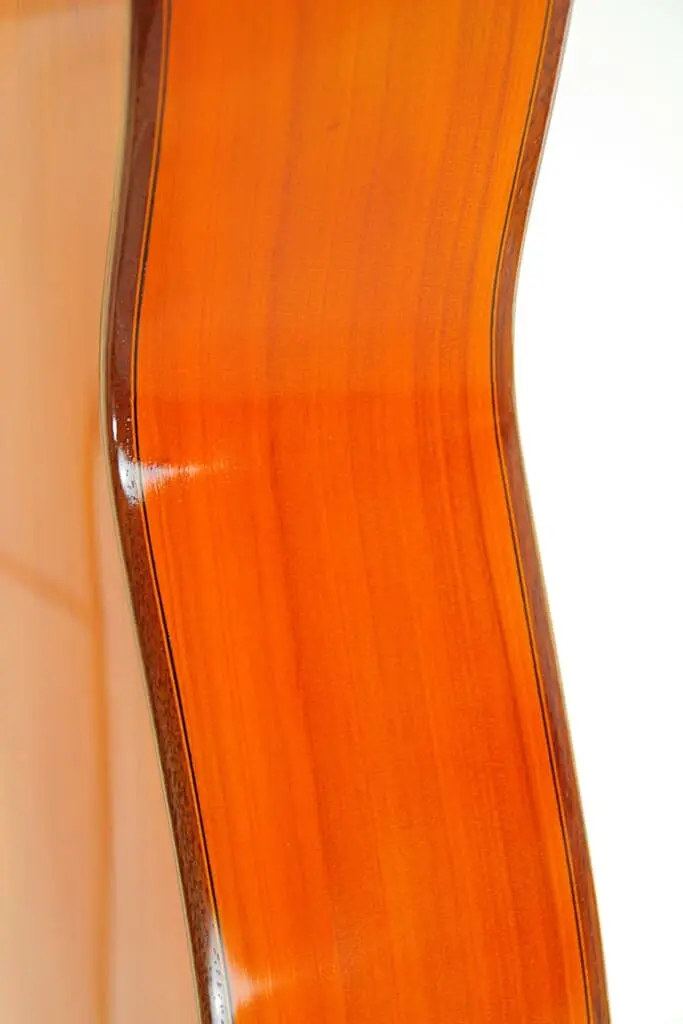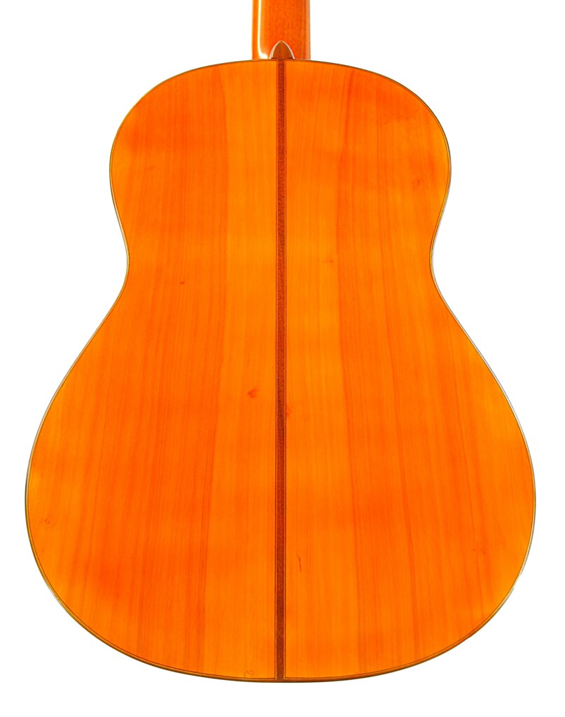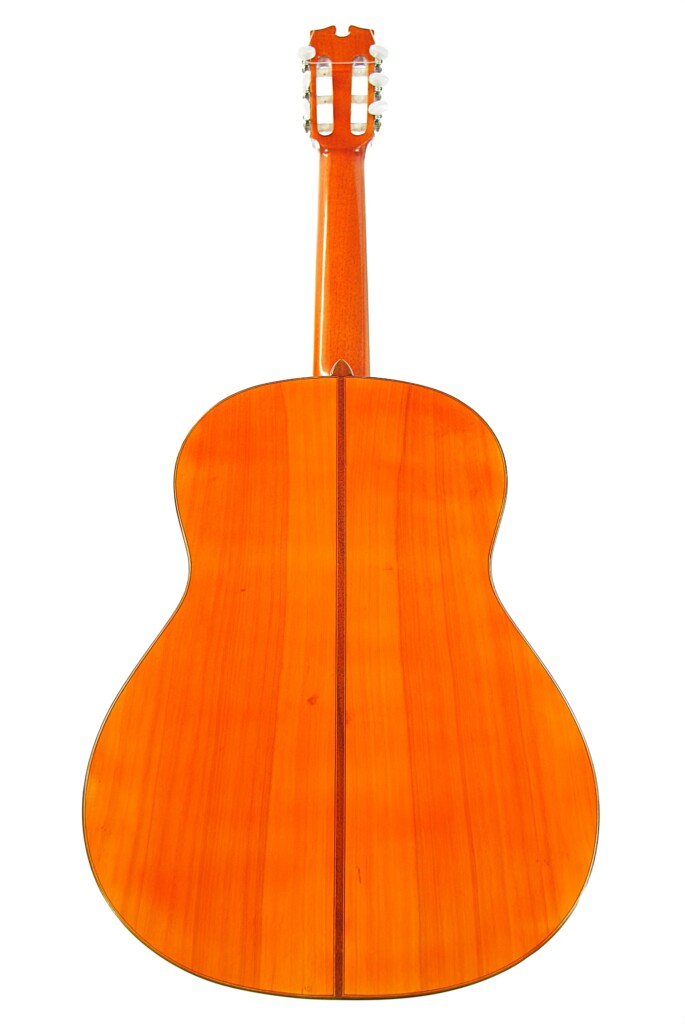 This guitar plays really well and produces an impressive flamenco sound – very Spanish with a mystical and warm nuance. It has an immediate attack with a honey-like, deep, woody texture. The guitar is very lightweight and spontabeous, typical of the best Andalucian flamenco guitars. We love this guitar as it has also this lyrical, singing quality to the sound. The bases are thick and well present. It can be very loud with a piercing volume and still it retains a charming tone.