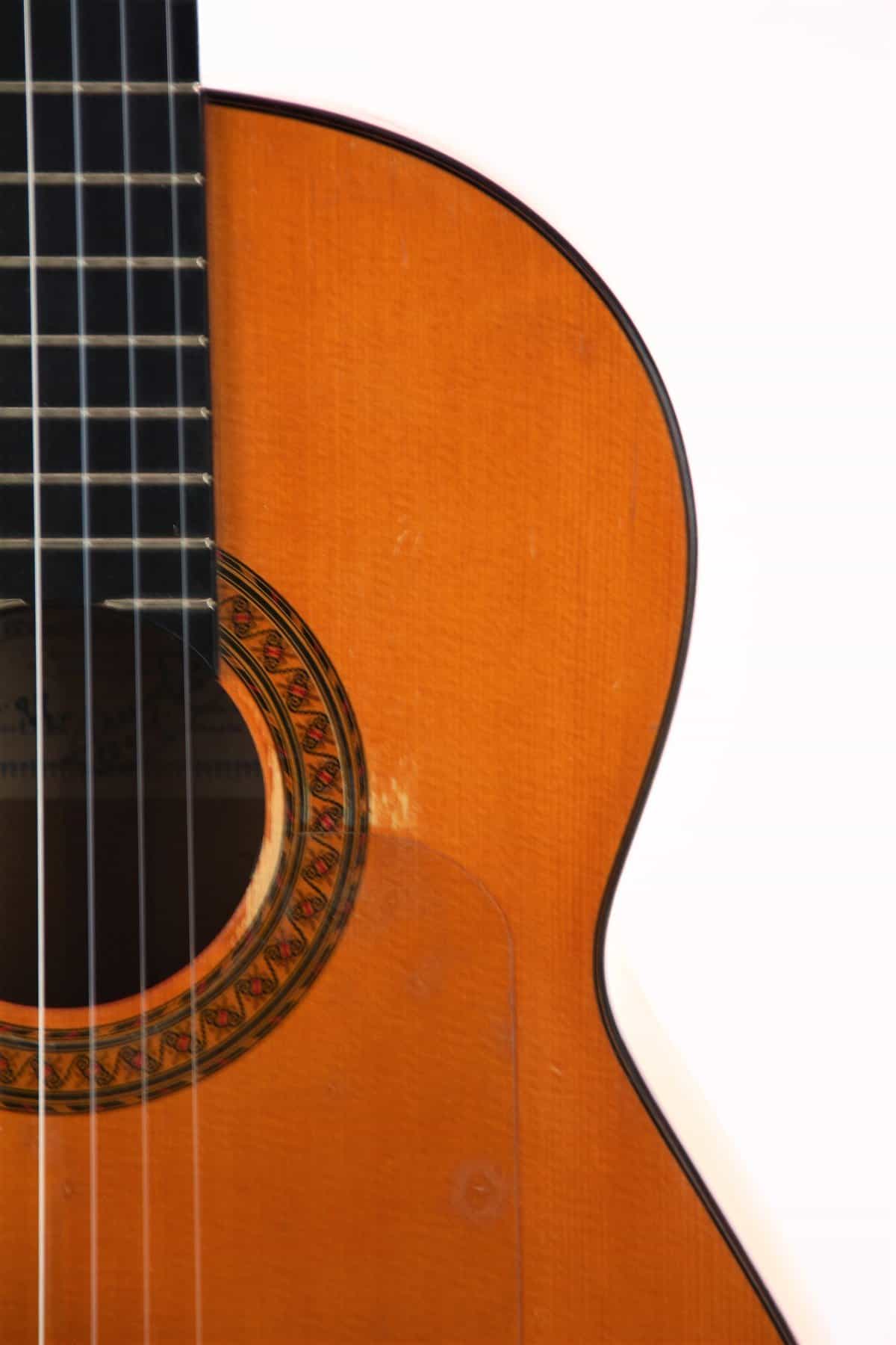 This is without doubt a fine concert level guitar with a very strong fundamental and very controlled overtones. It has a very natural, “woody” quality of sound, very stylish, refined and alluring. The rich, played-in quality of sound is something that can only be found in an instrument of this vintage. In the hands, it feels very expressive and responsive to the most subtle of changes in the players touch. The sound is absolutely magical from the bottom-end to the highest registers.
