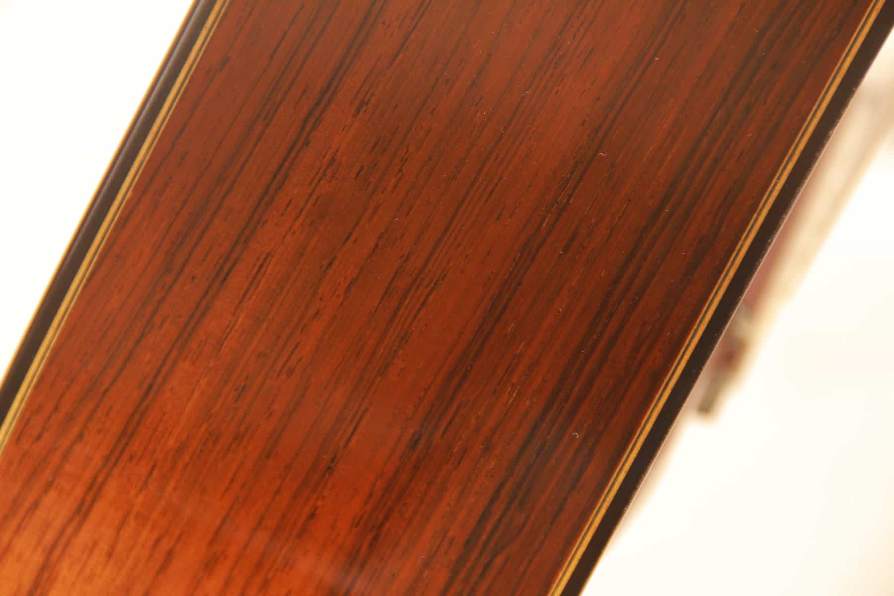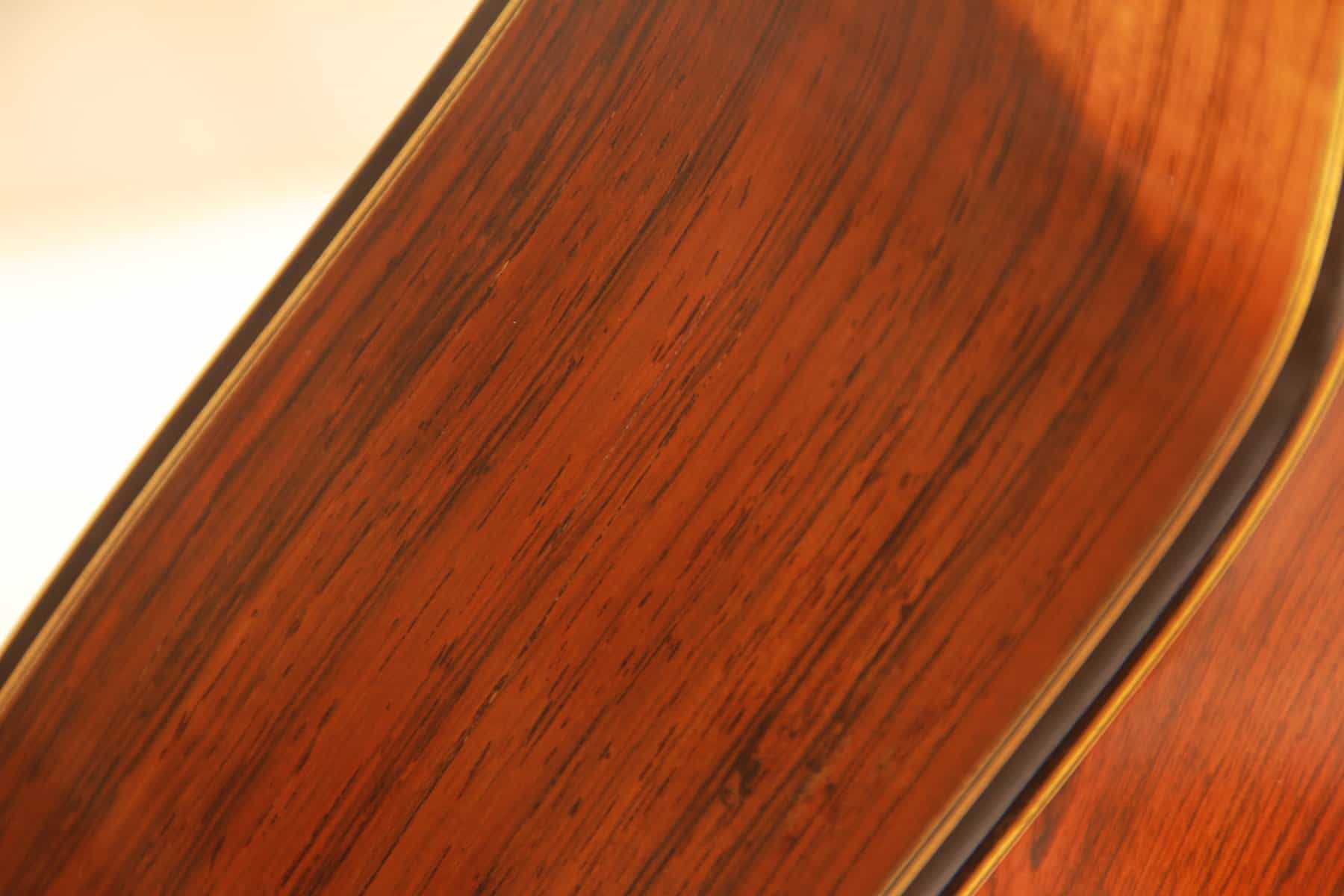 The materials of this guitar are really special. The old woods and varnish are fused together, enhancing the beauty of the fine spruce top and perfectly cut rosewood.