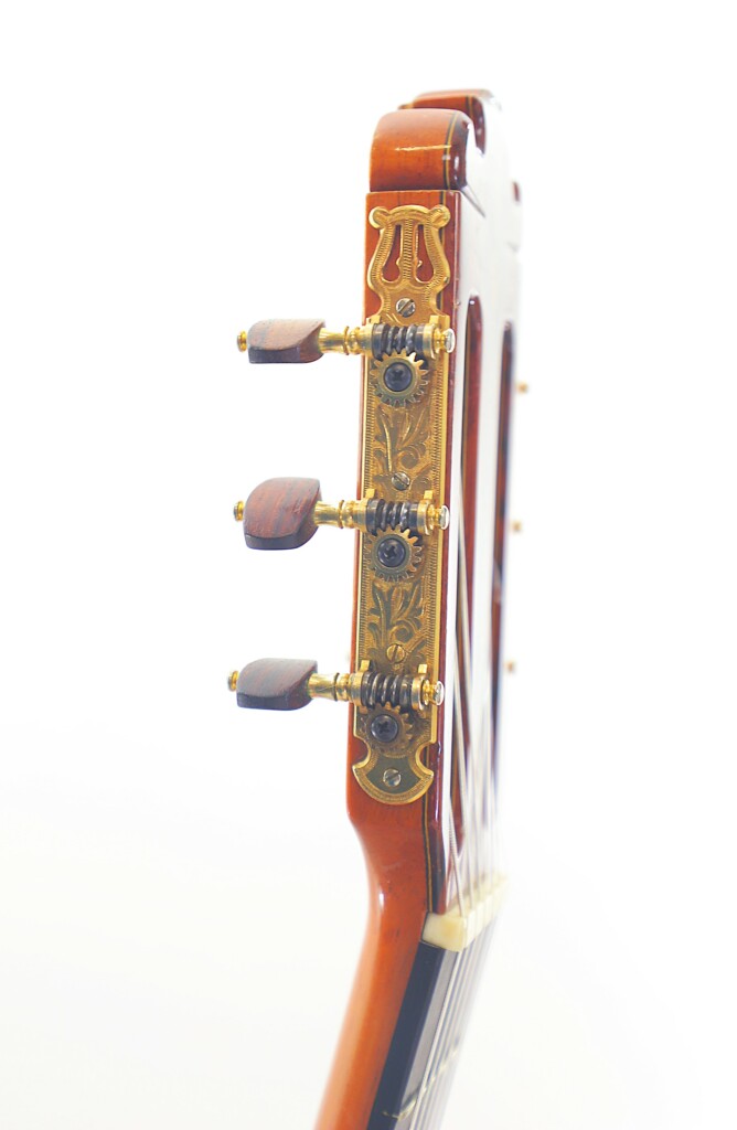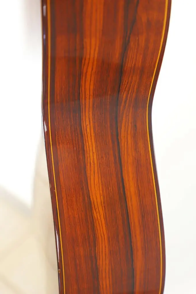 This was the top model from the Manuel Contreras II shop. In October of 2000, this model (the “10th Anniversary”) won first-prize at the Joaquin Rodrigo competition. Additionally, this particular guitar is from the “premium series” version, which indicates top selection of materials and workmanship. The materials used are exquisite, featuring their best well-aged rosewood and elegant cspruce for the soundboard. Workmanship is to the highest standards – this can be instantly detected even with a quick glance at the detailing, particularly in the purfling and rosette.