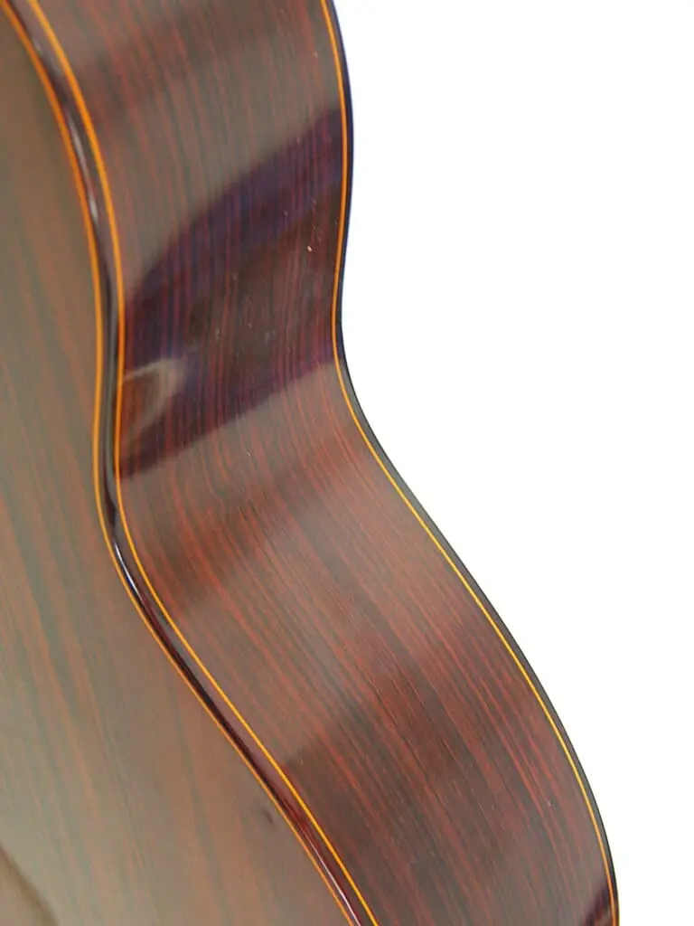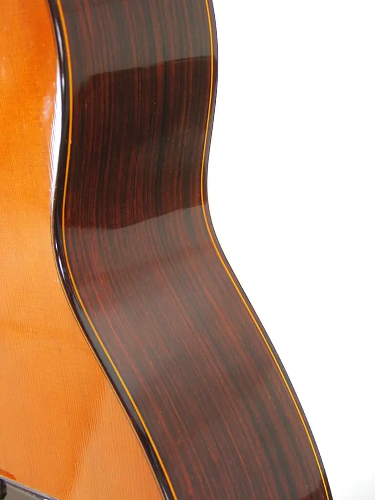 The top is made of spruce, the back and sides are of rosewood. It has a 655 mm scale and 51 mm nut width.