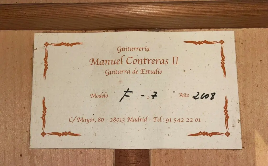 This is a guitar from Manuel Contreras’ shop, made according to the construction plans of Contreras by some workers.