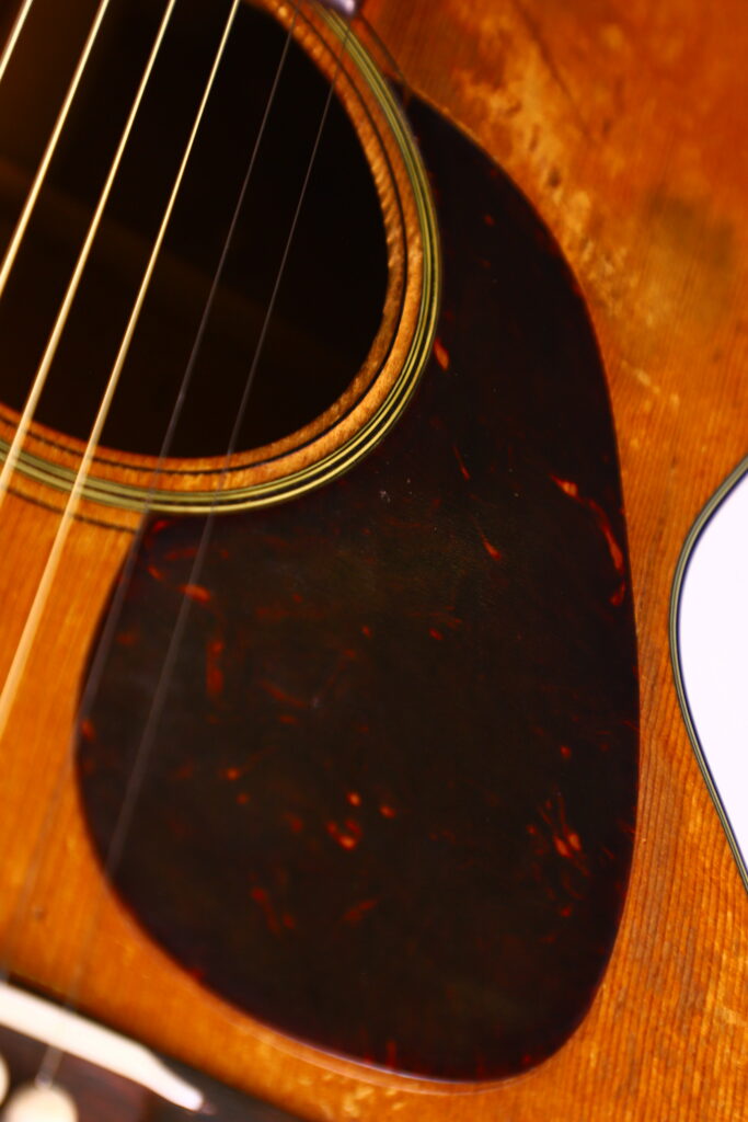 In the period shortly after the war, Martin produced exceptional guitars that are highly sought after today. This era was marked by a focus on craftsmanship rather than commercial interests; the guitars were built with slim bodies and the finest first-growth tonewoods. Every aspect of this instrument is entirely handcrafted, featuring stunning mahogany for the sides and back, complemented by a lovely spruce top, resulting in a powerful tonal presence. Guitars from this time represent the pinnacle of Martin’s craftsmanship, which is no small feat considering their long history of quality over the past century.
