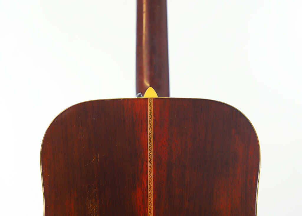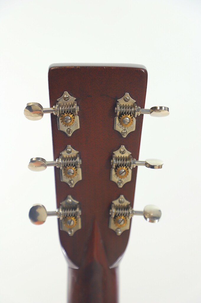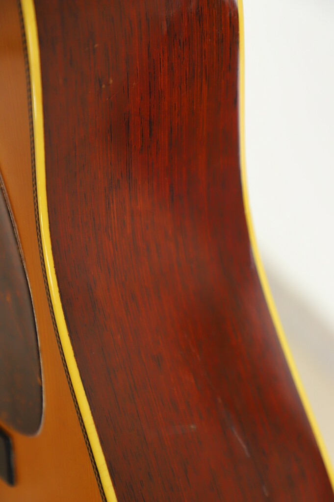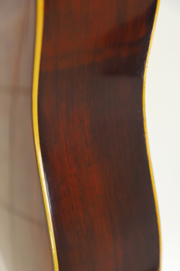 It is in great condition for the age. In the 60’s this guitar has been refinished. It has also received a new bridge – bridge plate is original. Some parts of the binding have been reglued. The guitar has received a neck reset and a refret.