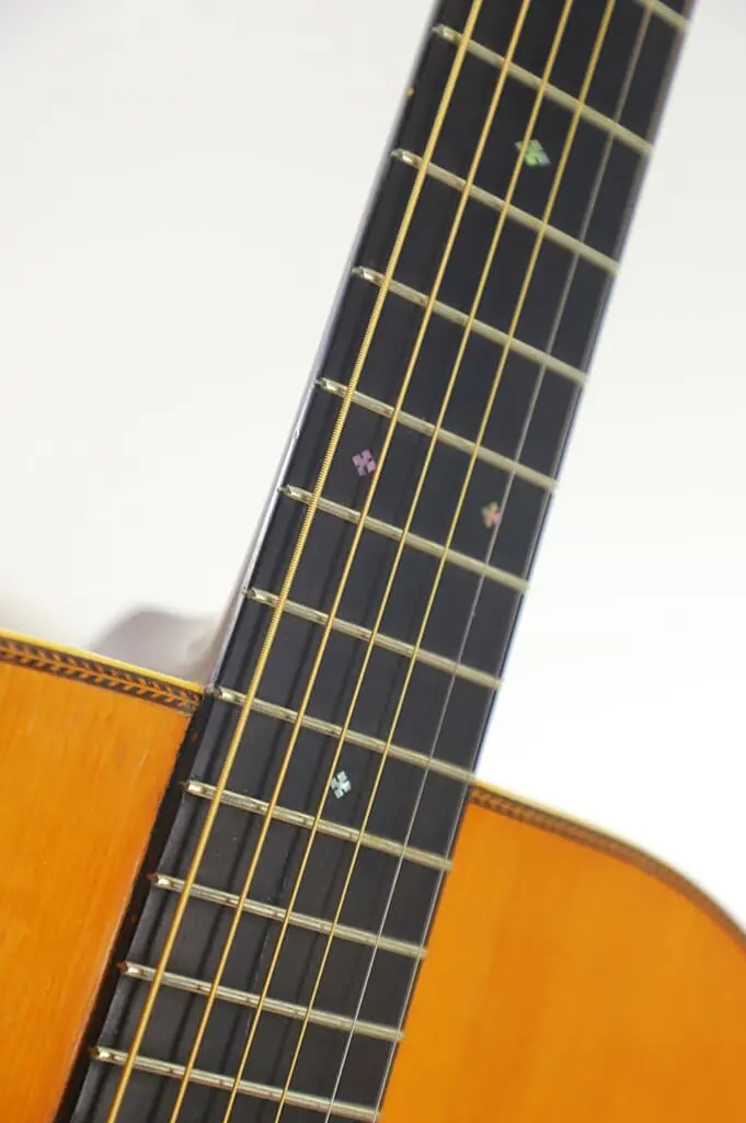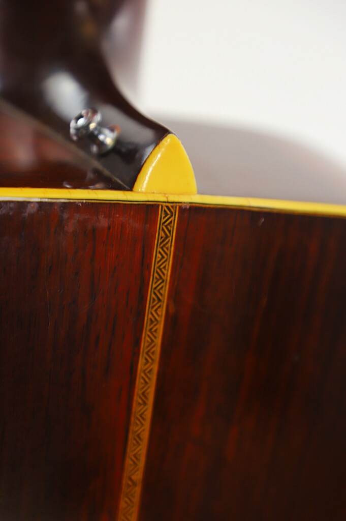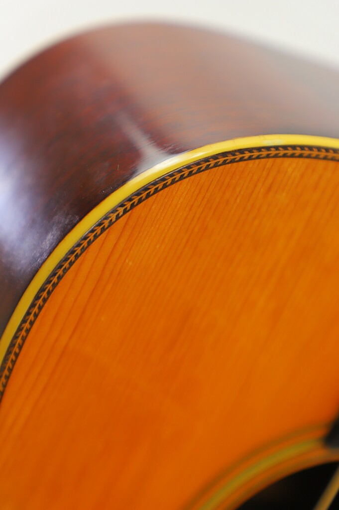 It has all the desired pre-war features: scalloped bracing, heringbone binding, snow flake fretboard inlays … the “holy grail” acoustic guitars, to say the least!