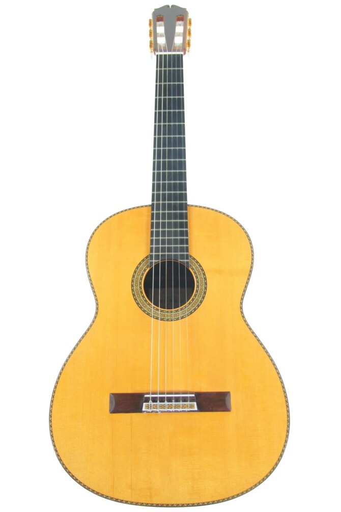Although Kohno began building guitars in 1948, it wasn’t until returning back to Japan in 1960, after a 6-month trip to Spain (where he apprenticed with Arcangel Fernandez) that he established his successful workshop. His international debut came in 1967, when he was awarded a Gold Medal at the “Concours International de Quatuor a Cordes et Rencontres Musicales Internationales de Liege” in Belgium (of interest, Daniel Friederich was another of the top winners at this competition).