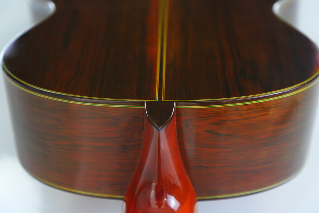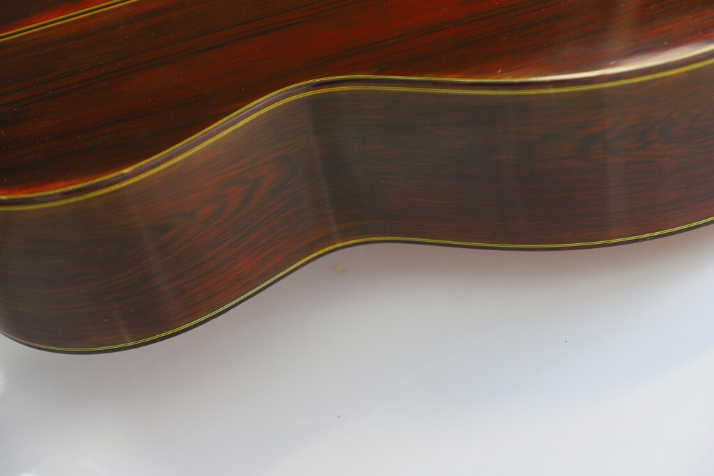 Although Kohno began crafting guitars in 1948, his career reached new heights after a six-month apprenticeship in Spain in 1960, where he worked under the renowned Arcangel Fernandez. Upon his return to Japan, he established his own workshop, blending traditional Spanish guitar-making techniques with his own innovative craftsmanship. His international recognition came in 1967 when he was awarded the Gold Medal at the prestigious “Concours International de Quatuor à Cordes et Rencontres Musicales Internationales de Liège” in Belgium. This victory solidified his reputation as one of the world’s leading guitar makers, alongside other masters such as Daniel Friederich, who was also honored at the same competition.