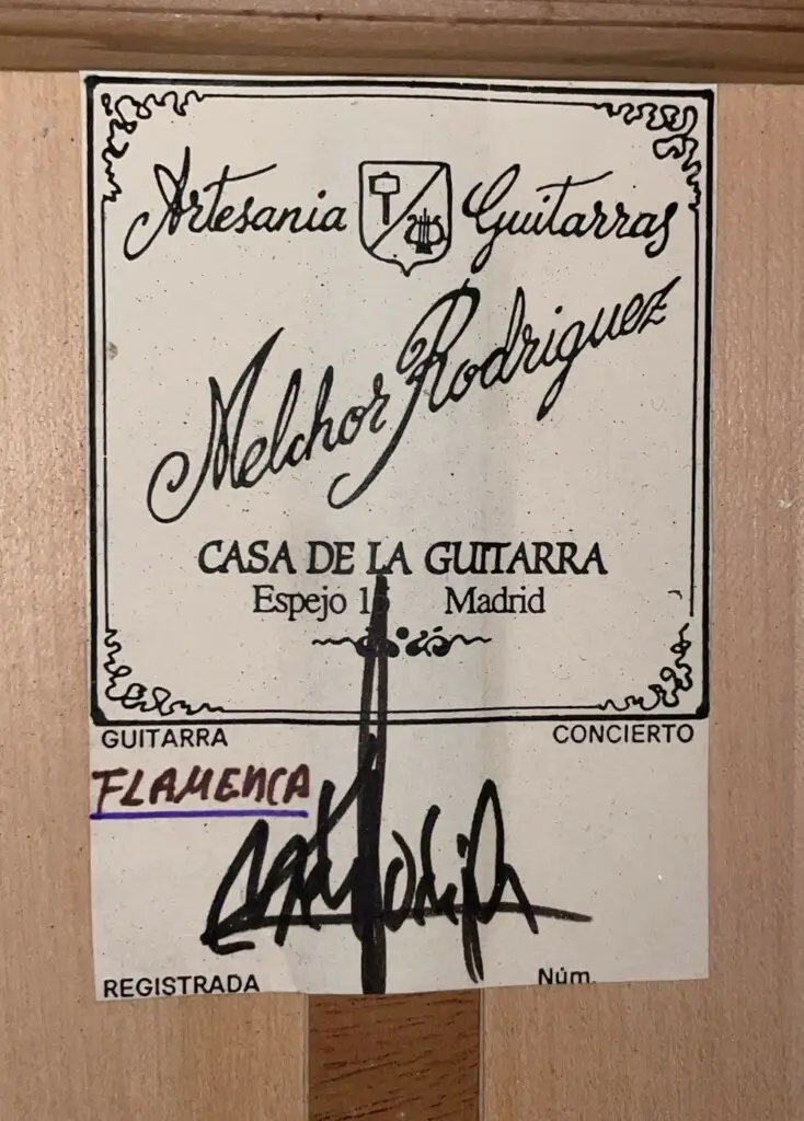 This Melchor Rodriguez flamenco guitar is in great condition with just some amount of wear from play and use. It comes with a gigbag.