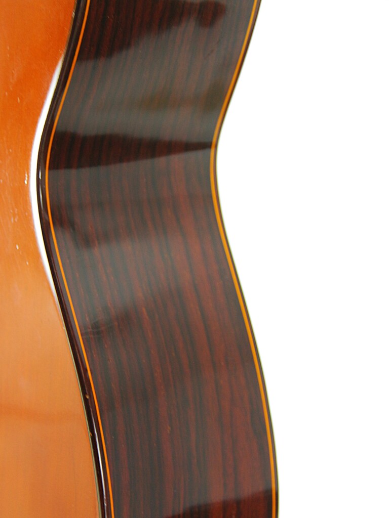 This guitar by Melchor Rodriguez was built in the style of a Jose Ramirez. The guitar has a cedar top and rosewood back and sides. The scale length is 660 mm and the nut width 53 mm.