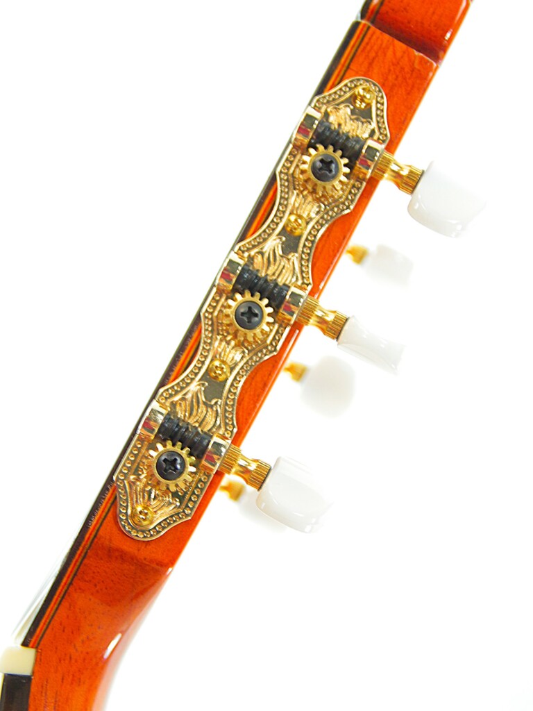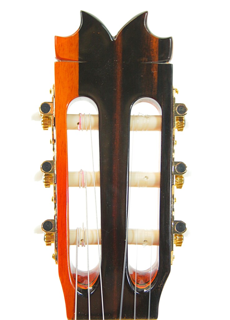 The scale length is 660 mm and the nut width 52 mm. It plays extremly well all the way down the neck. The neck is fast and straight – the setup is perfect for flamencoo playing!