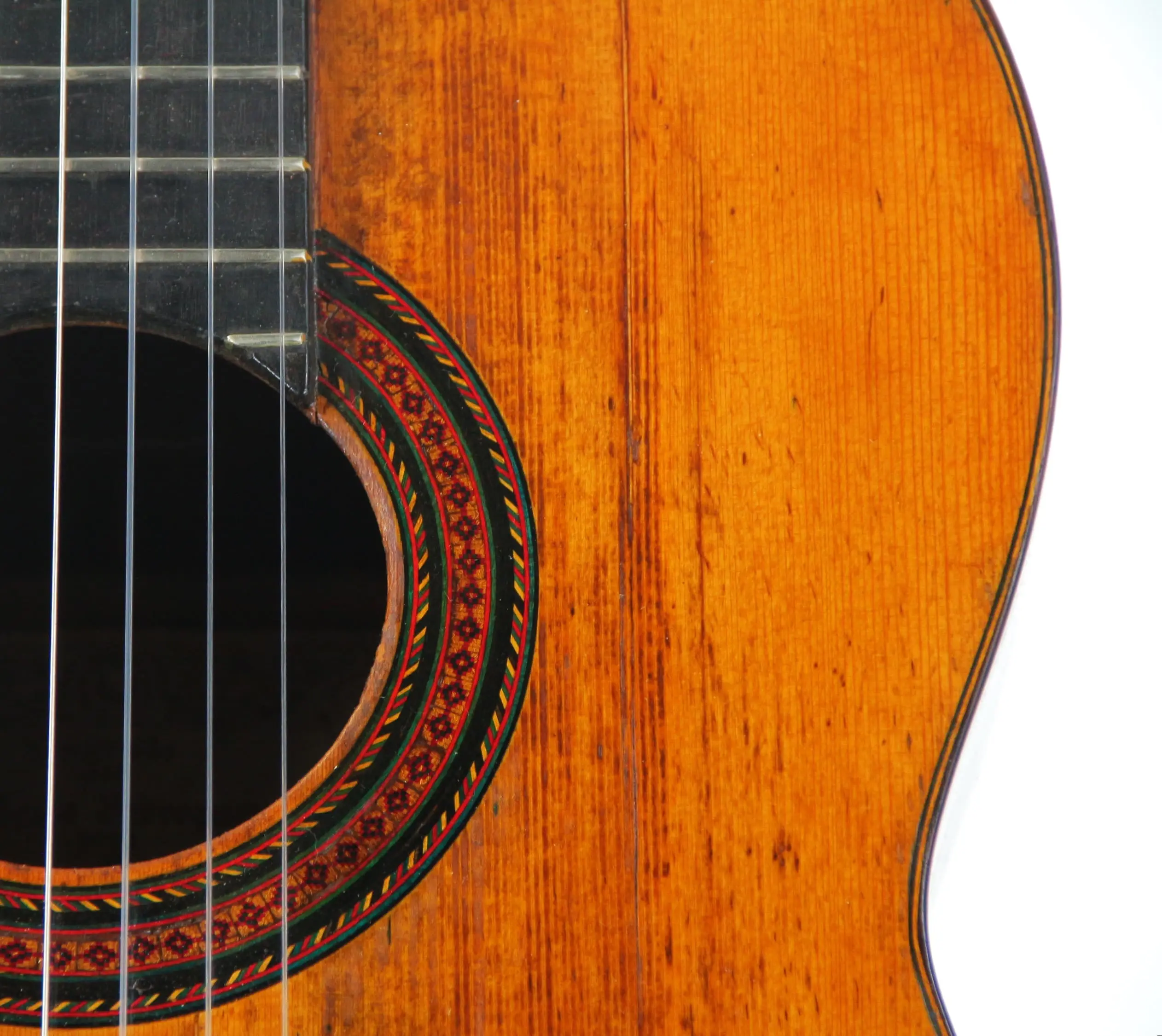The sound is simply breathtaking, possessing all the hallmarks of a truly exceptional classical guitar. It produces a bold, resonant voice, with a tonal complexity that allows the sound to radiate beautifully from the top, back, and sides. The basses are deep and full, while the trebles shine with crystalline clarity, delivering a balanced, dynamic sound that has only improved with age. This guitar stands on equal footing with the legendary instruments of Santos Hernandez, Manuel Ramirez, and Domingo Esteso—an extraordinary instrument in every way.